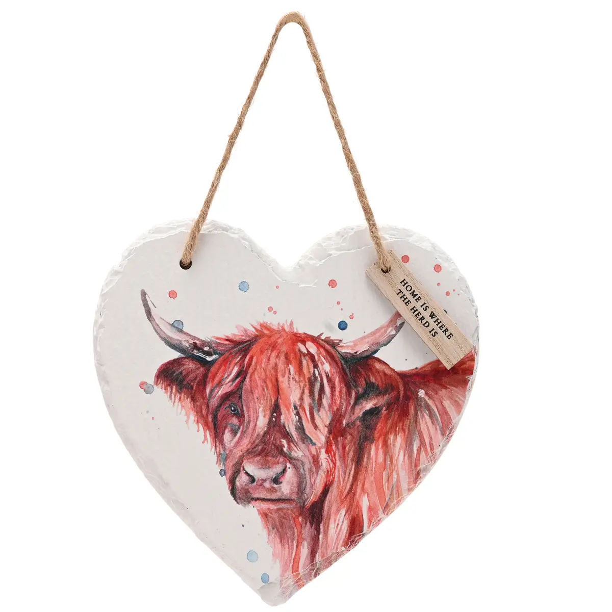 Made from natural slate and featuring a Highland cow illustrated in Meg’s signature watercolour style, this hanging heart celebrates the spirit of British wildlife. Inspired by life in the Shropshire hills, it is a timeless piece that feels both comforting and gift ready.