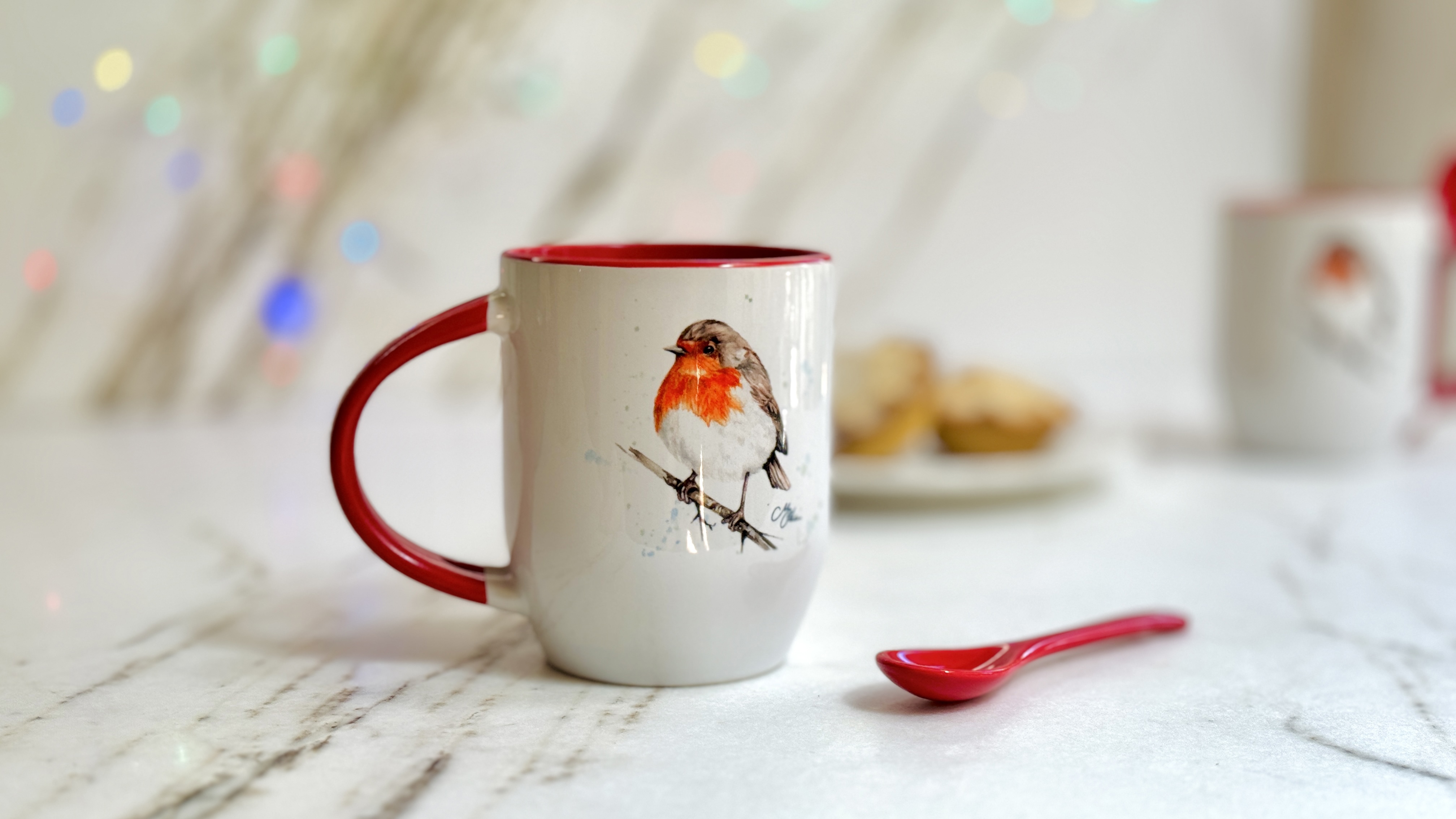 Meg Hawkins Robin Design Limited Edition Ceramic Mug & Spoon Gift Set