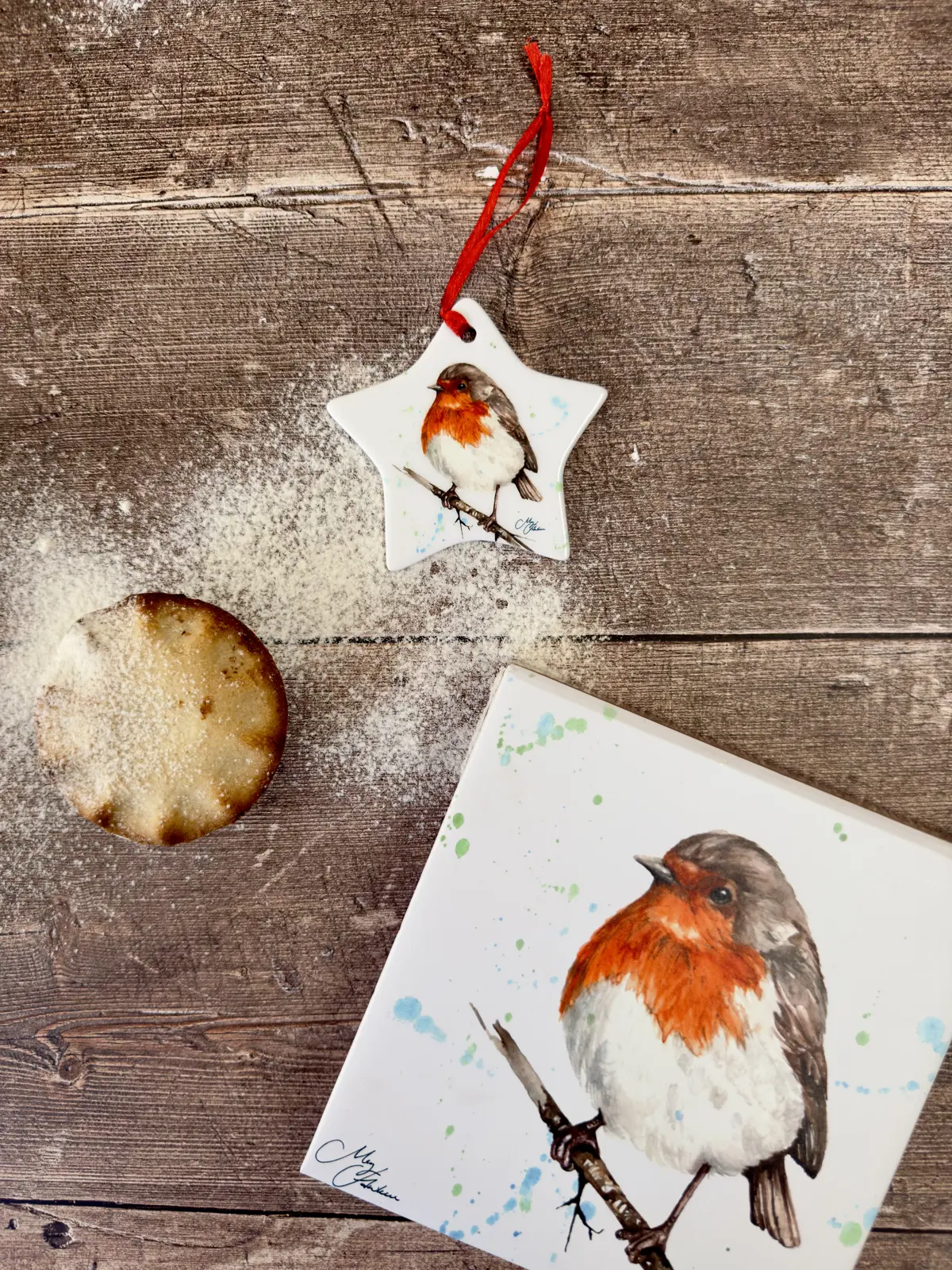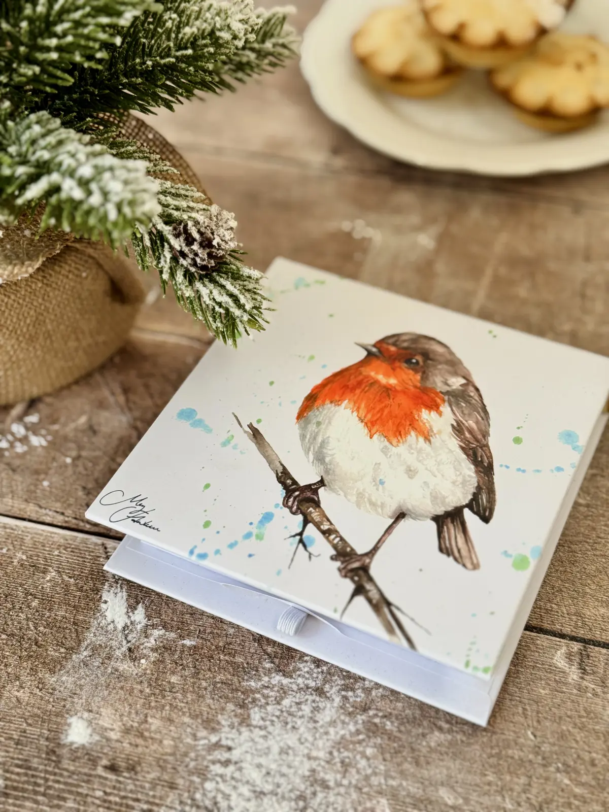 • Delicate robin illustration with watercolour detail