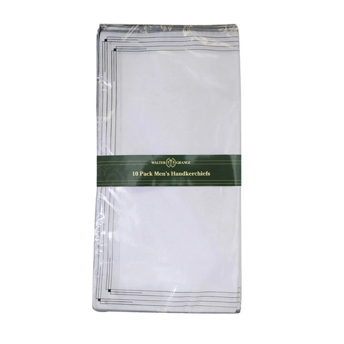 Upgrade your accessory collection with these stylish men's hankies. Each pack includes ten handkerchiefs crafted from a blend of 65% polyester and 35% cotton, ensuring both softness and durability. Featuring a classic white design with assorted coloured borders, these handkerchiefs add a touch of elegance to any outfit. Perfect for adding that sense of refinement to any occasion.