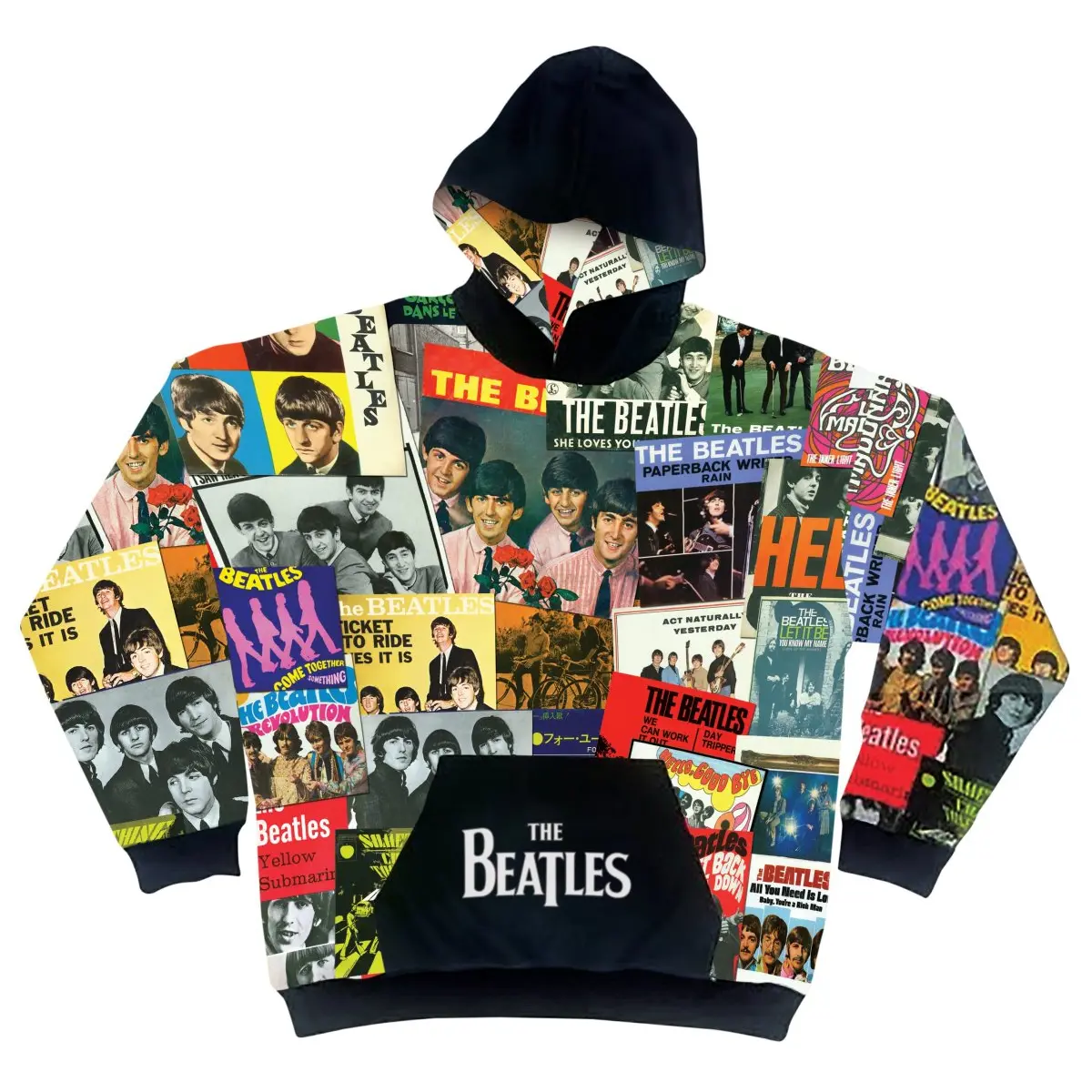 Men's The Beatles Singles Covers Black All Over Hoodie