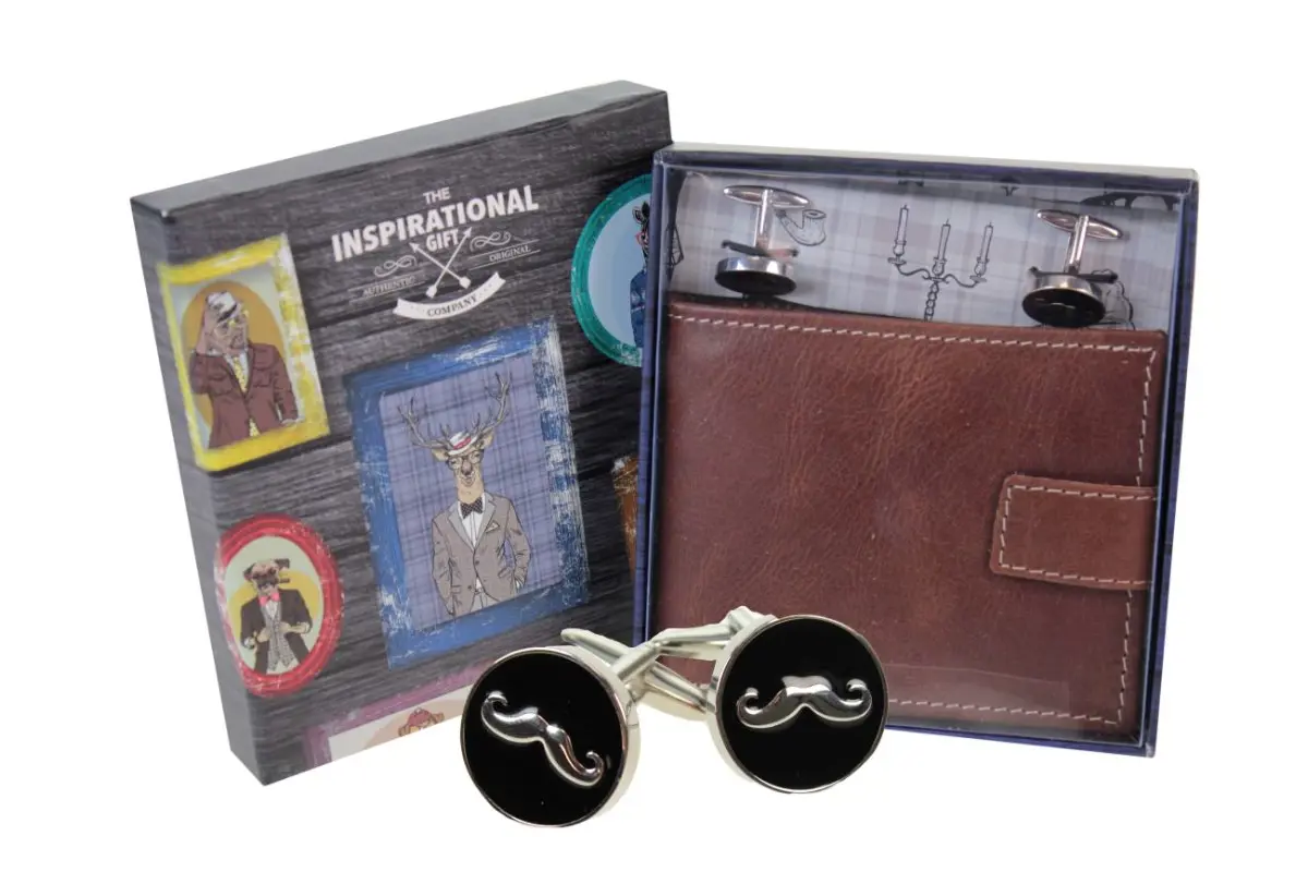 Mens Wallet and Cufflinks Gift Set