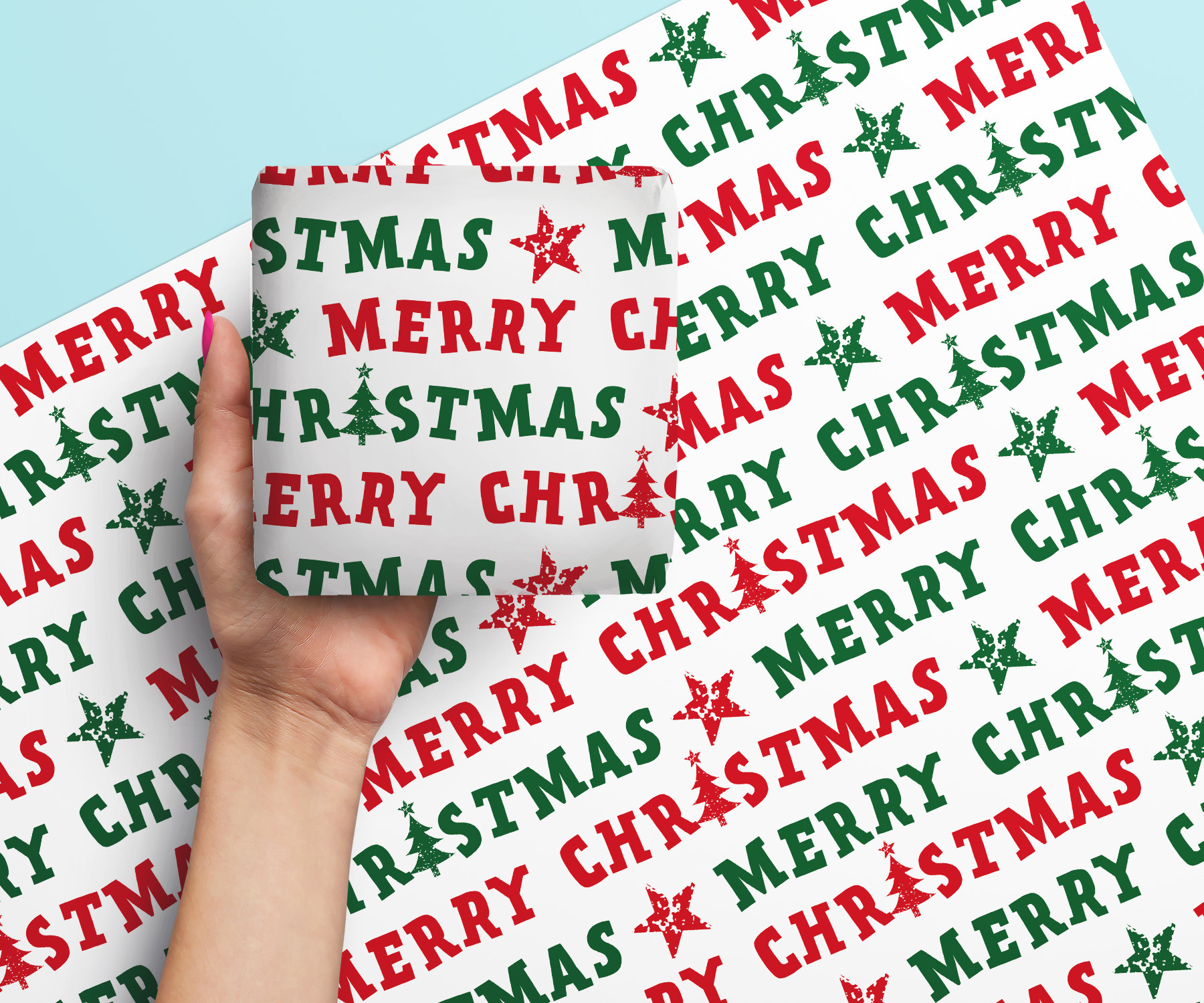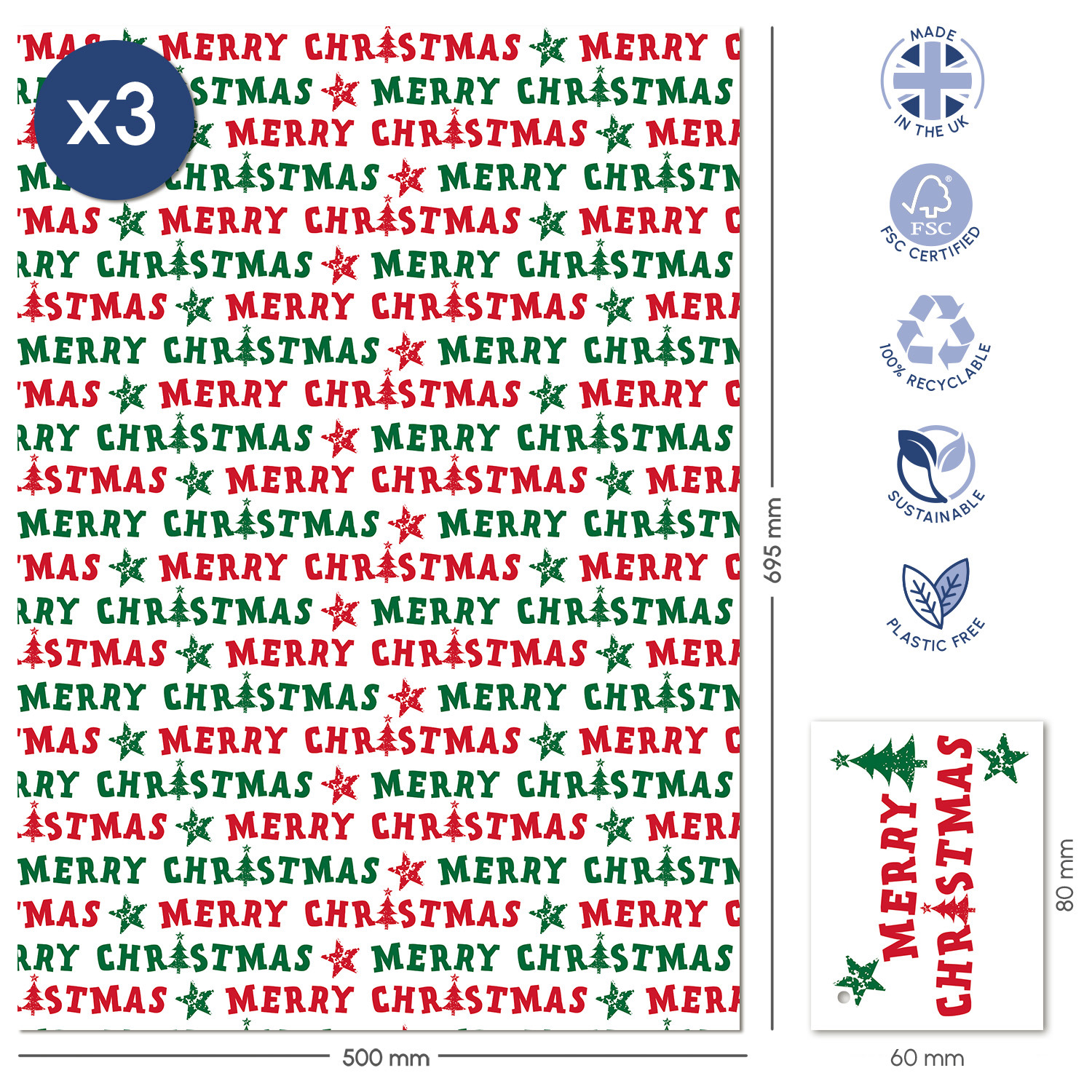 Merry Xmas Tree Giftwrap Wrapping Paper - 6 Sheets & Assorted Tags