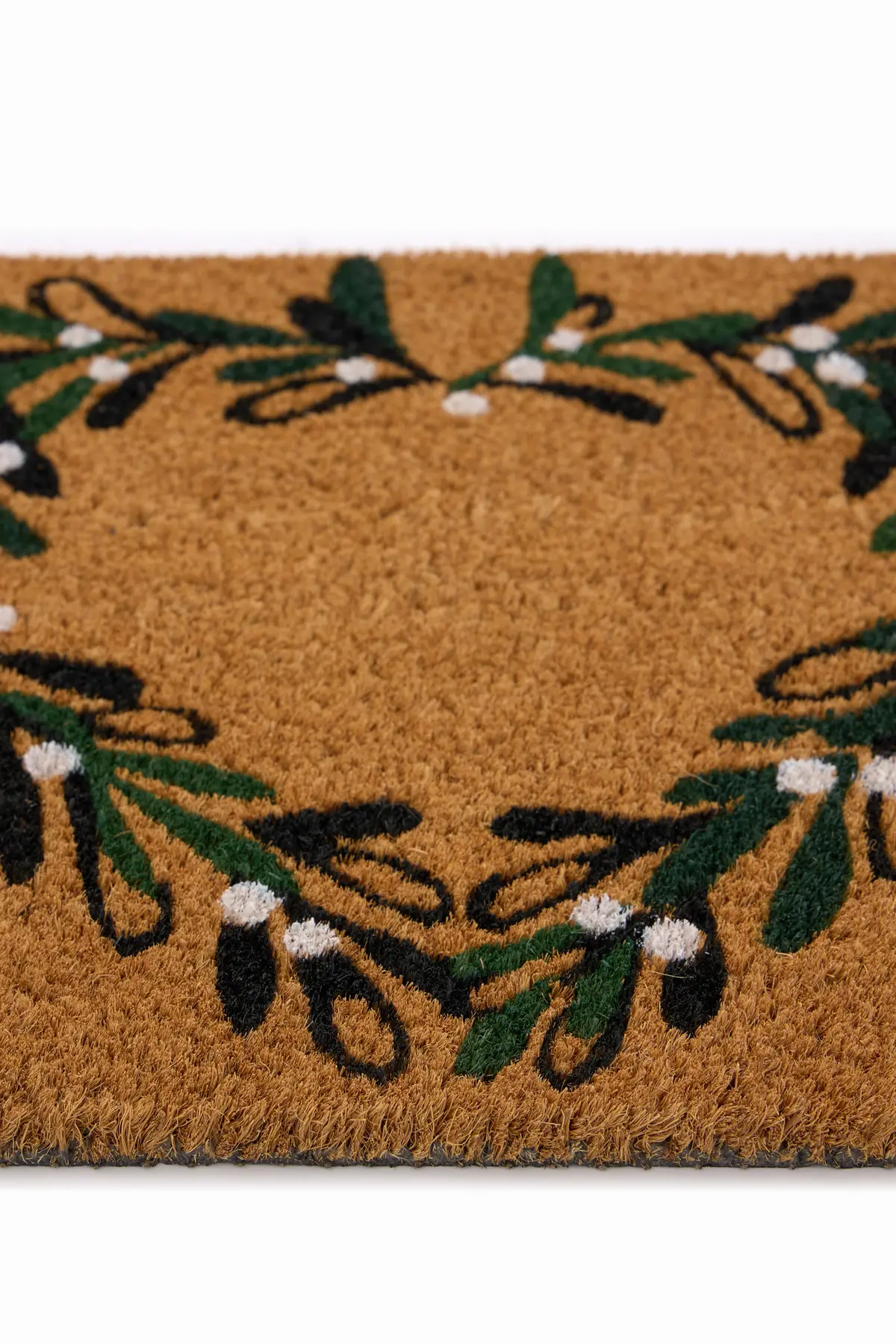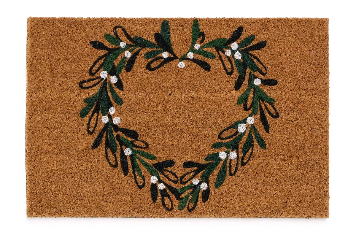 Welcome guests with subtle festive charm using the Mistletoe Heart Wreath Coir Outdoor Festive Doormat. Featuring a beautiful heart-shaped wreath of mistletoe on a natural coir background, this design adds a touch of warmth and seasonal elegance to any doorway.