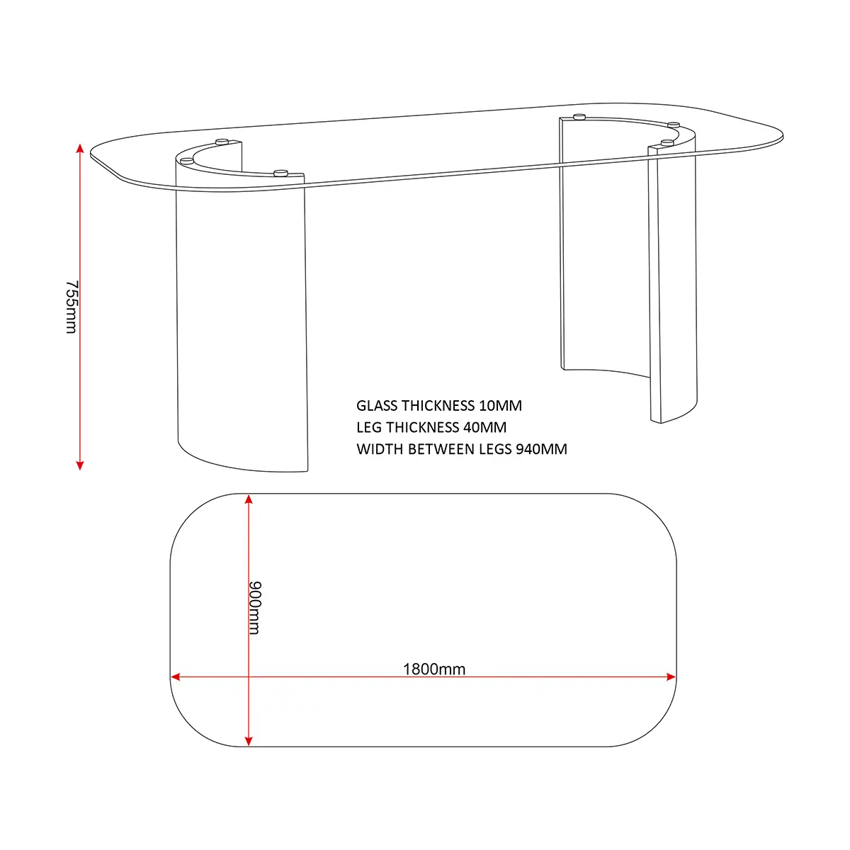 Width: 1800 x Depth: 900 x Height: 755 (mm)