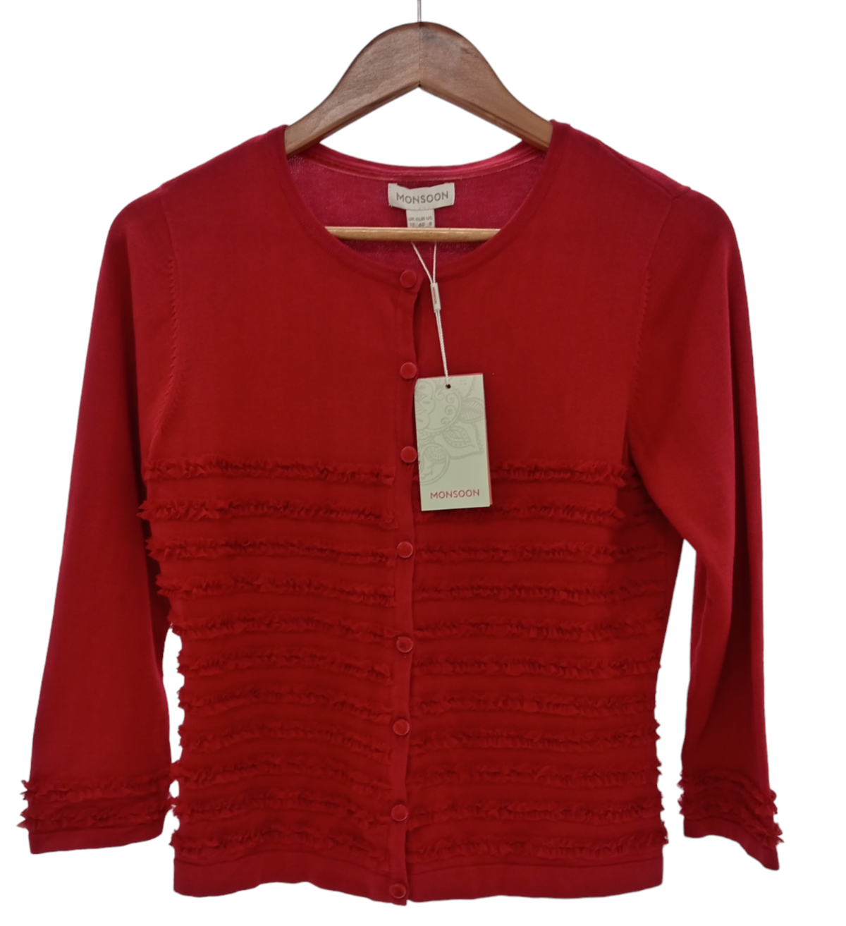 Brand new with tags attached, this MONSOON cardigan is in pristine condition, preserving its fresh-from-the-store quality. With no signs of wear or imperfections, it's ready to become a staple in your wardrobe rotation, adding a pop of color to your outfits.