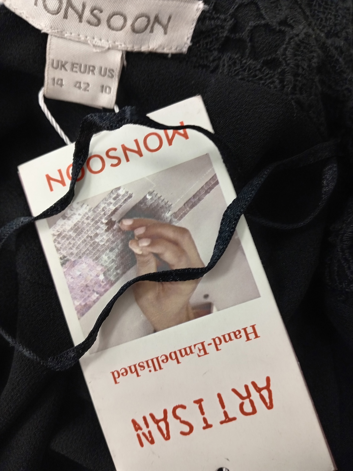Monsoon Ladies UK Size 14 Black Sequin Casual Open-Front Cardigan – Pre-Loved