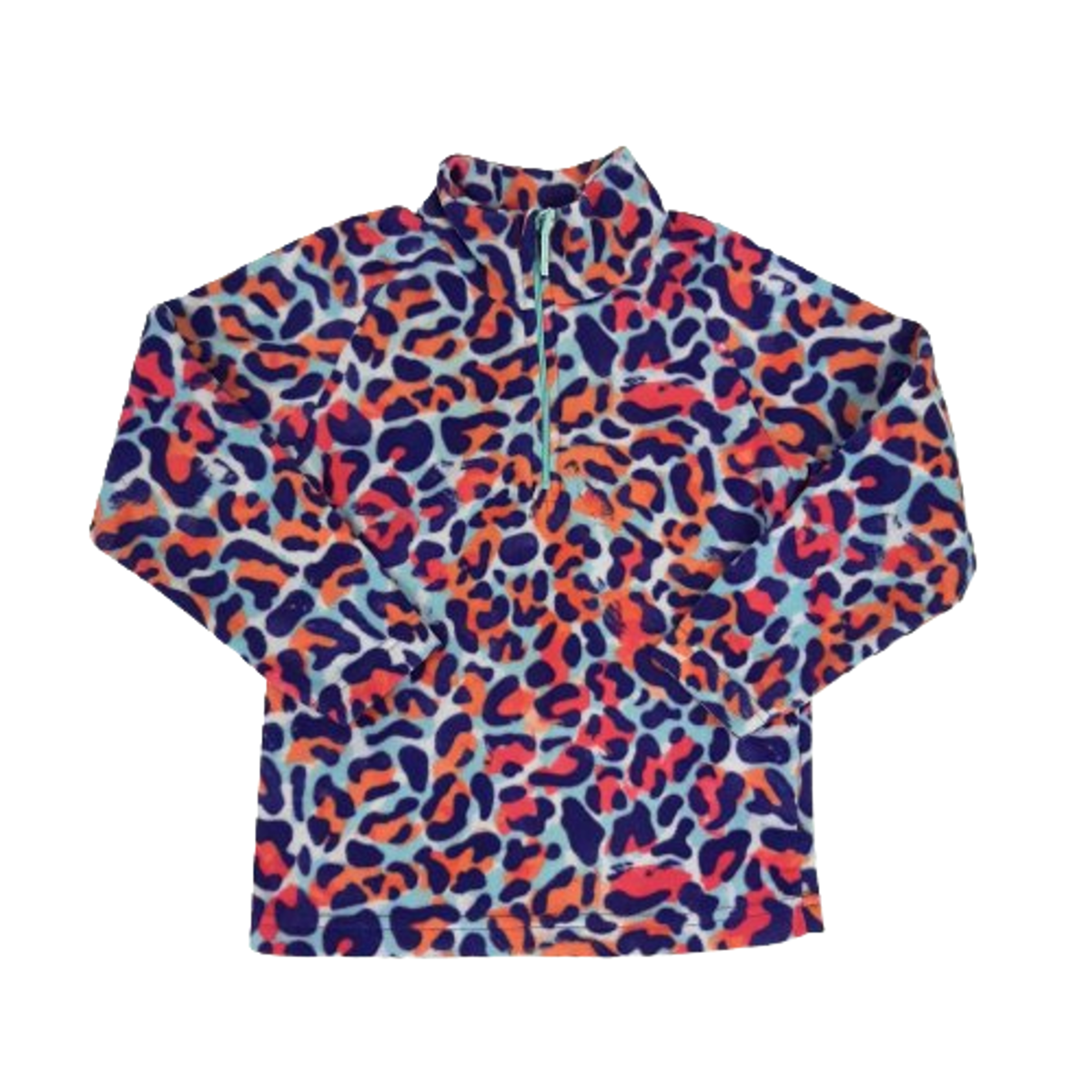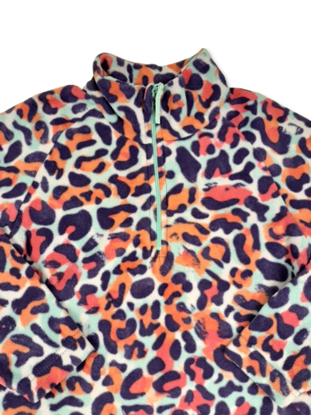 Mountain Warehouse Girls Multicoloured Leopard Print Quarter Zip Fleece Size 5-6 Years Pre-Loved Re-Fashioned