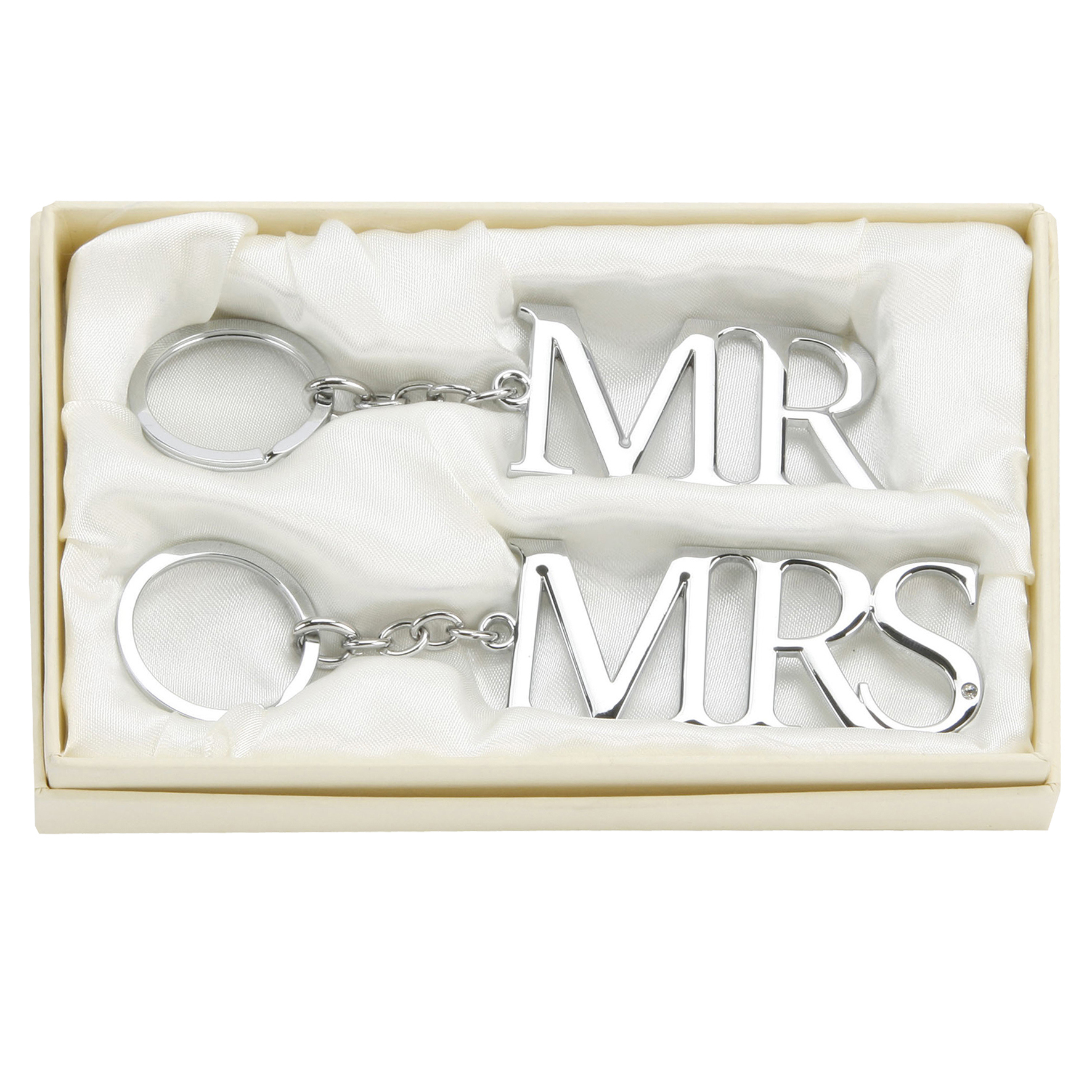 Mr & Mrs Set of 2 Silverplated Keyrings