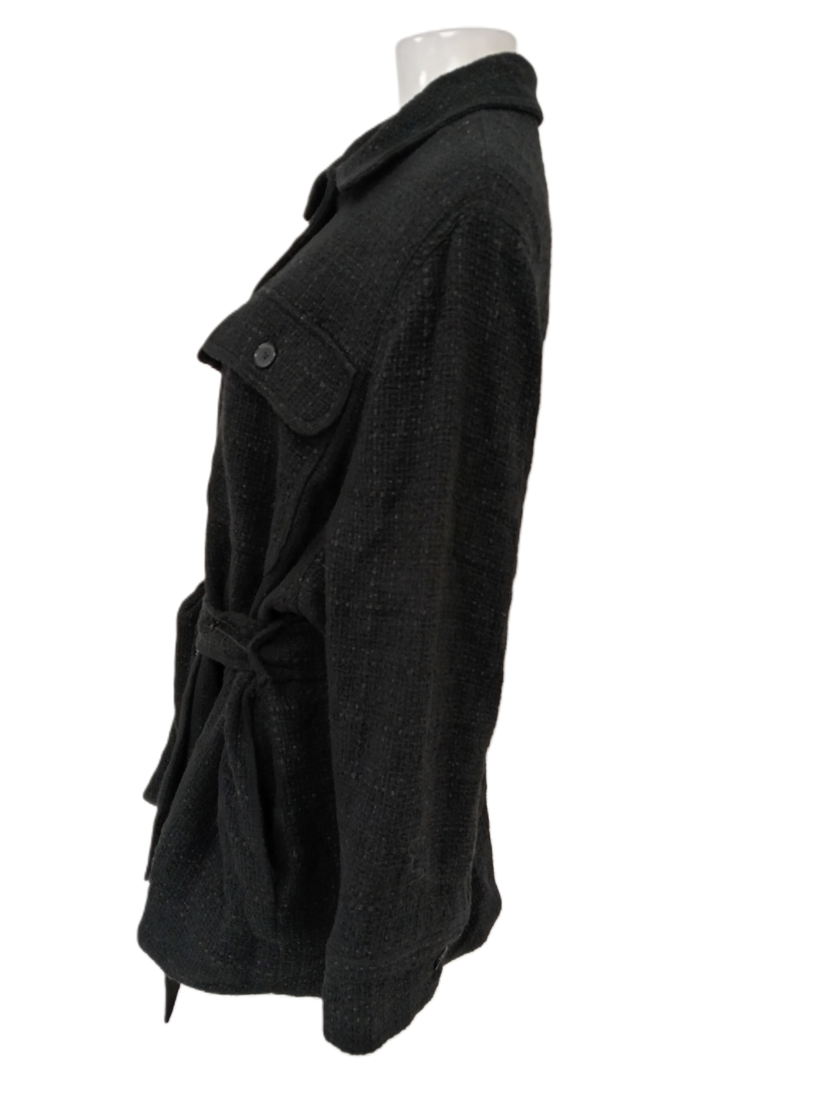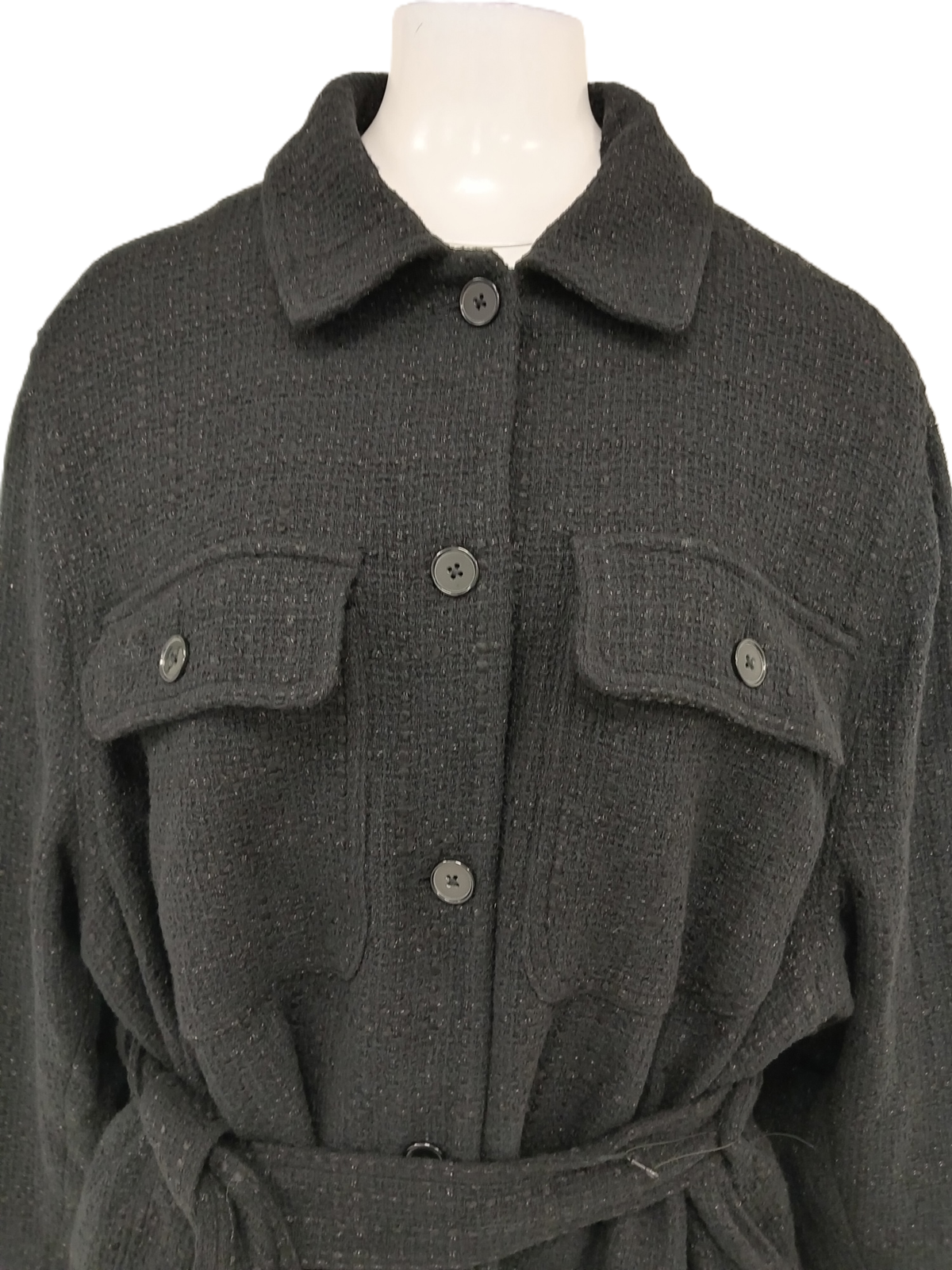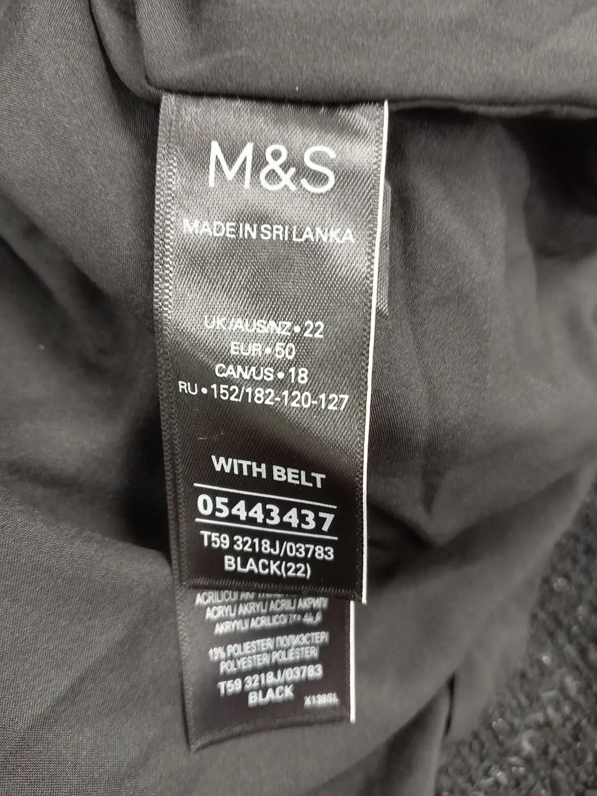 M&S Ladies UK Size 22 Black Relaxed Fit Belted Button-Up Jacket