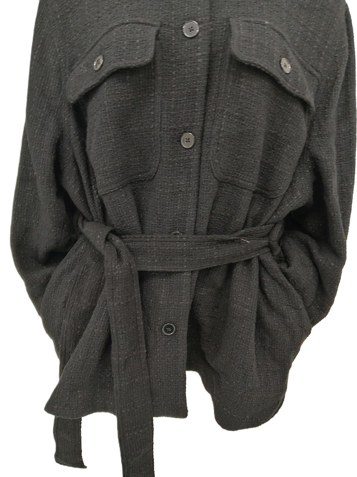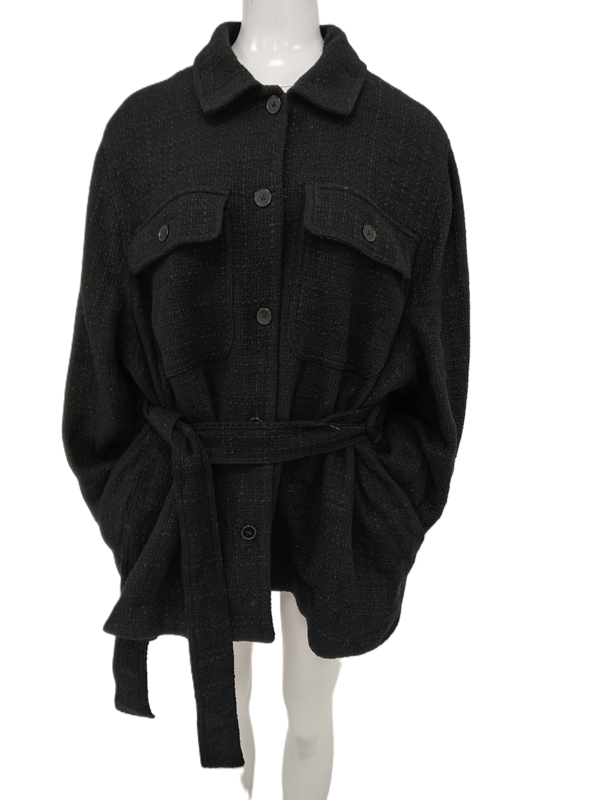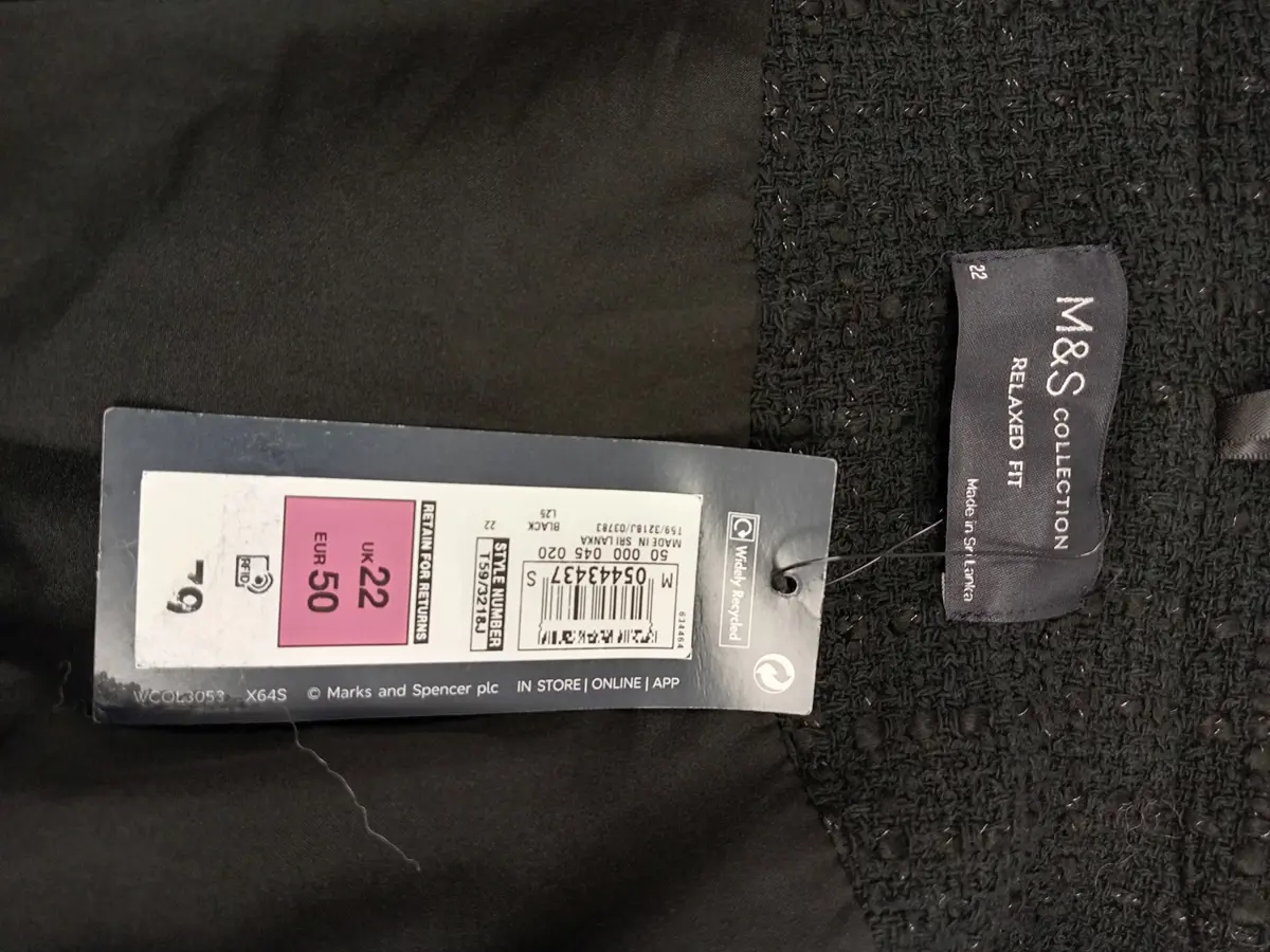 M&S Ladies UK Size 22 Black Relaxed Fit Belted Button-Up Jacket