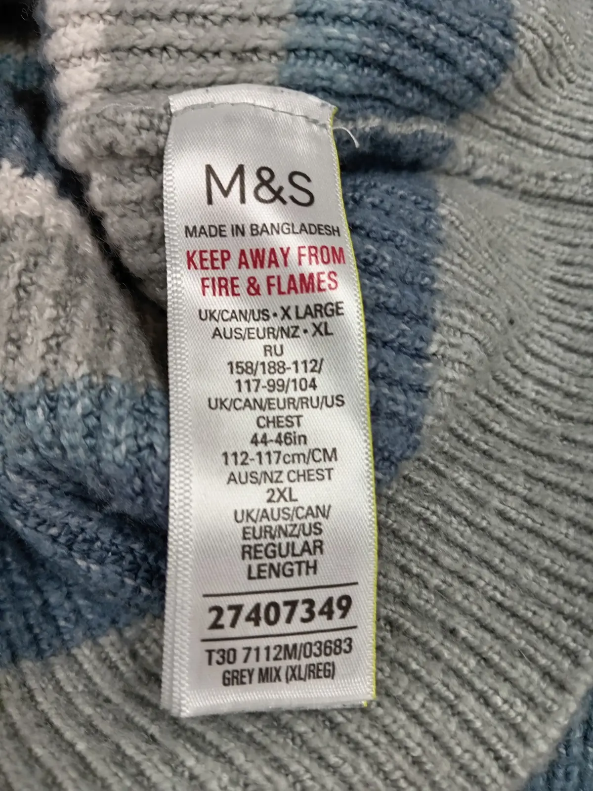 M&S Men's UK Size XL Grey & Blue Casual Winter Knit Jumper