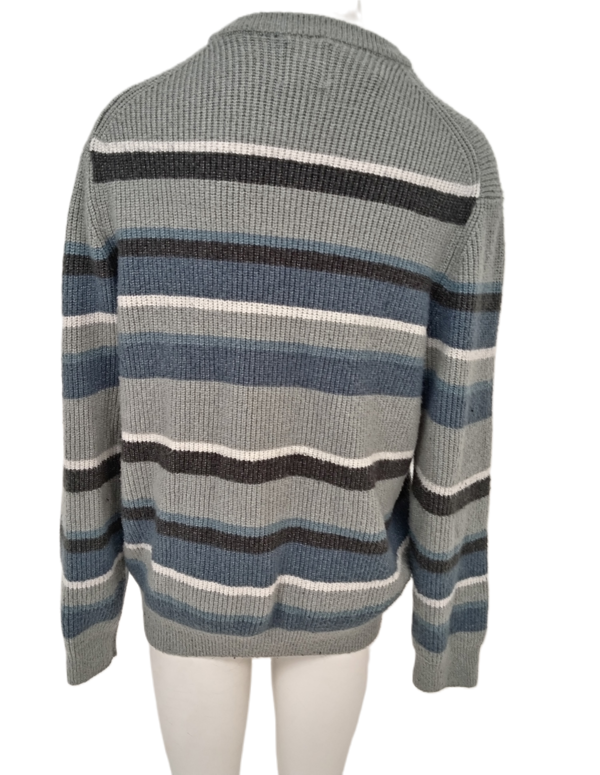 M&S Men's UK Size XL Grey & Blue Casual Winter Knit Jumper Pre-Loved