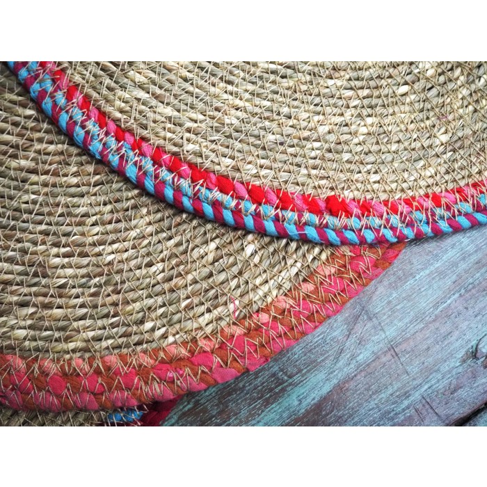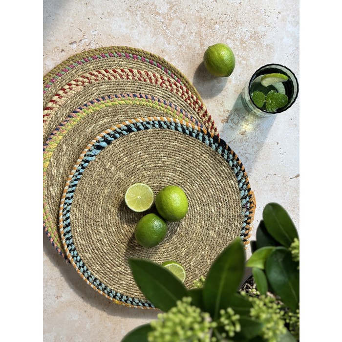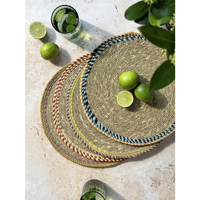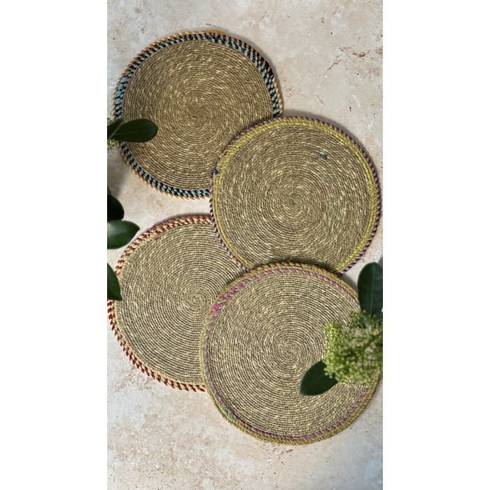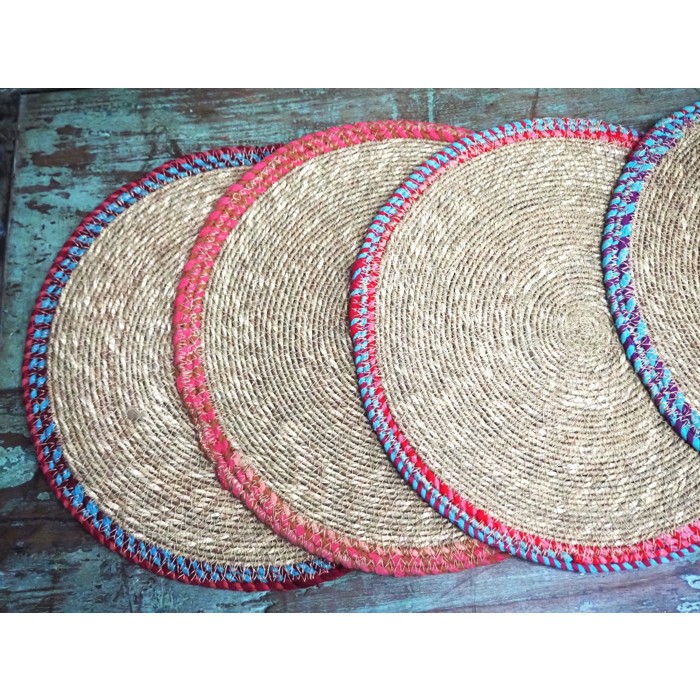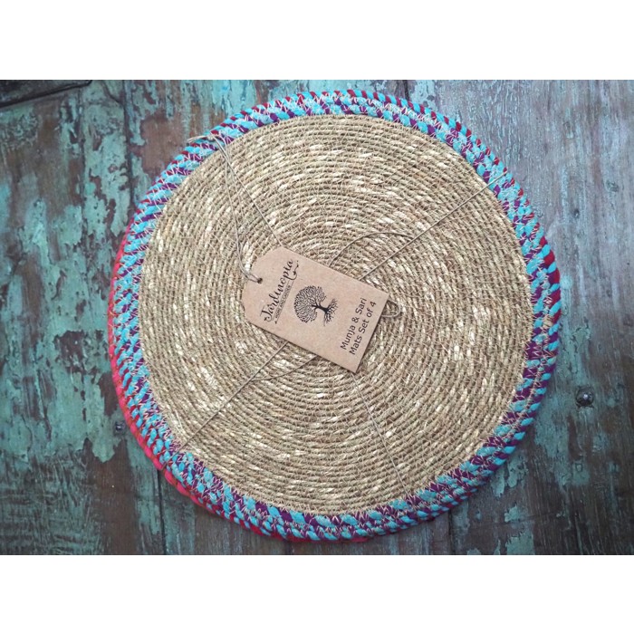 Munja And Reclaimed Sari Fabric Set of 4 Round Mats 31cm