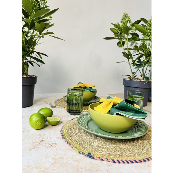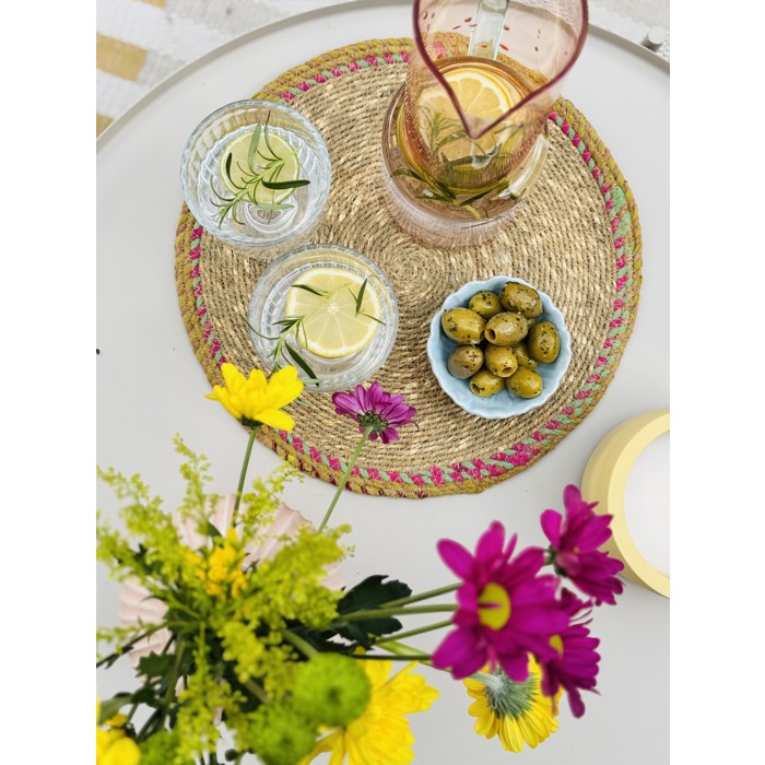 Decorate your table with this set of 4 round mats from Jardinopia. Made in India from reclaimed sari fabric from factory offcuts, each mat has then been crafted together with sustainably sourced munja, resulting in a unique and eco-friendly alternative to traditional table mats. They are strong, versatile and suit any room or occasion. They can also be used as surface protectors for plant pots, preventing water damage or fading. Size - Length 148 cm x Width 45 cm