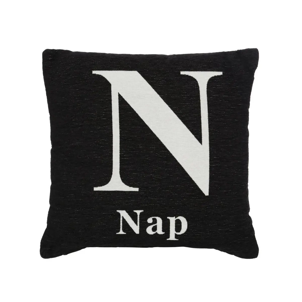 Made from 100% polyester with a chenille jacquard finish, the cushion feels wonderfully soft while the hollow fibre filling provides gentle support and comfort. The off white “Nap” wording, with the letter “N” highlighted, stands out beautifully against the black background to create a stylish accent that suits a wide range of interiors.