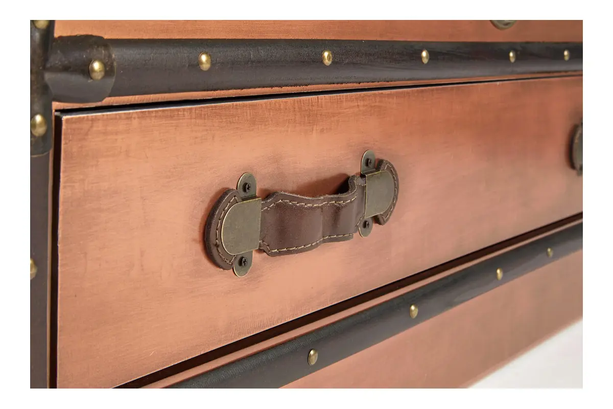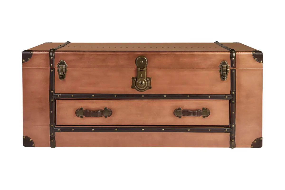 Add a touch of classic travel inspired charm to your home with the Navigator Trunk. With its warm copper finish, studded faux leather trim and traditional detailing, this striking piece brings refined character to living rooms, bedrooms or study spaces.