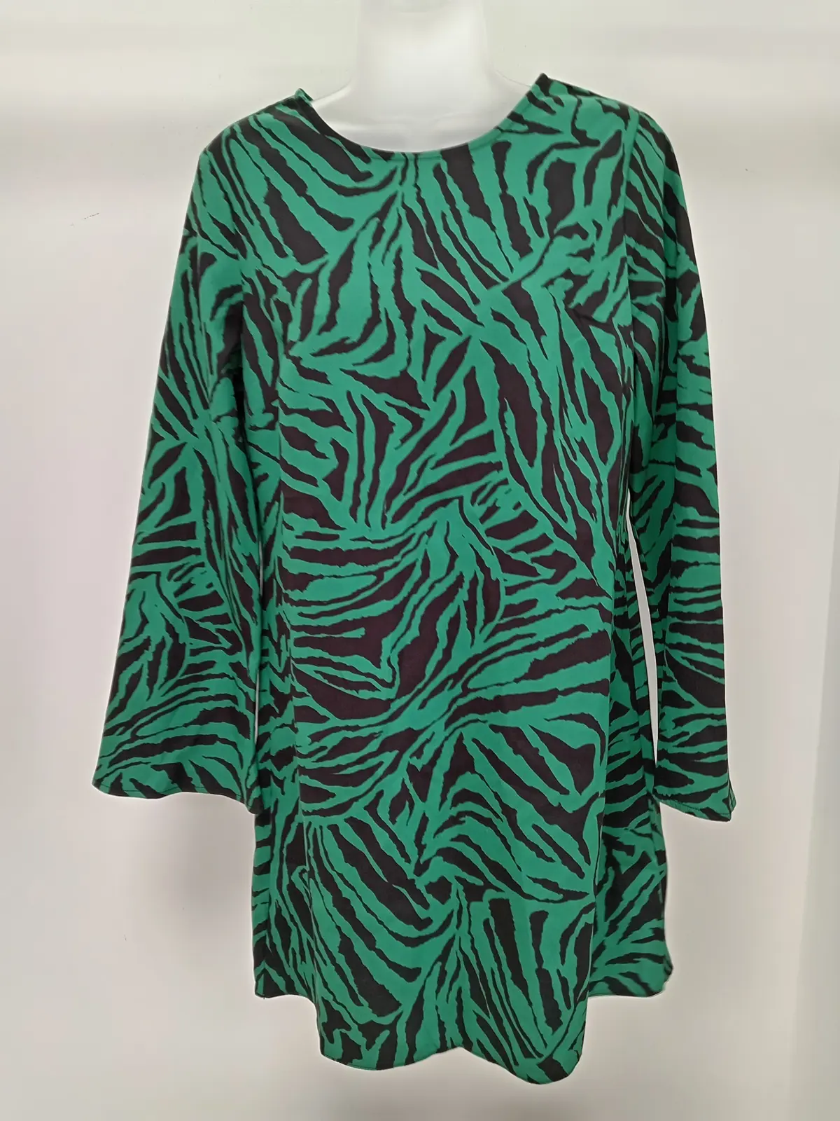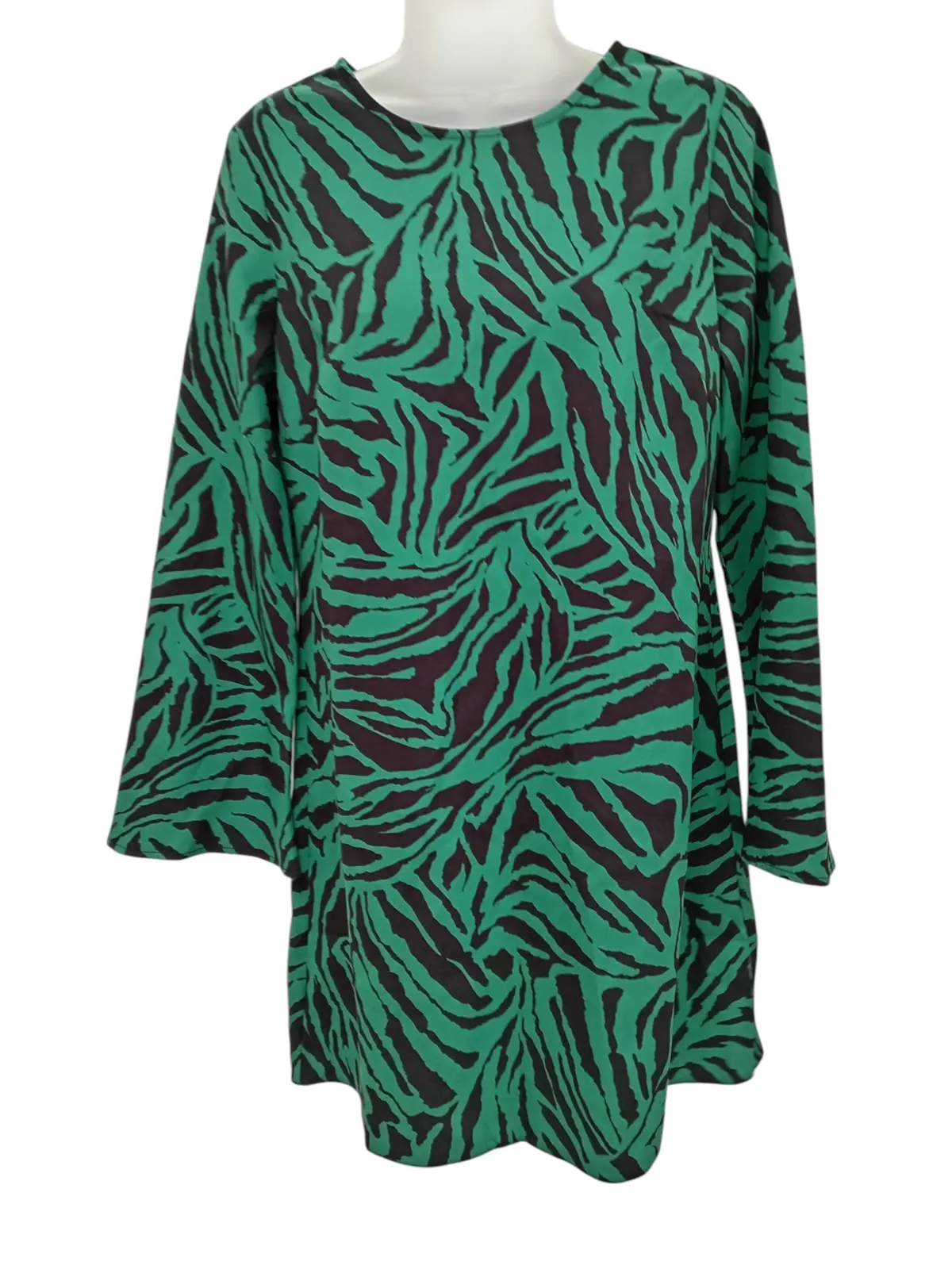 Make a bold statement with this NEW LOOK Ladies Dress in a striking green and black zebra print. Designed for both comfort and style, this eye-catching piece is perfect for day-to-night wear, special occasions, or adding a touch of wild flair to your wardrobe.