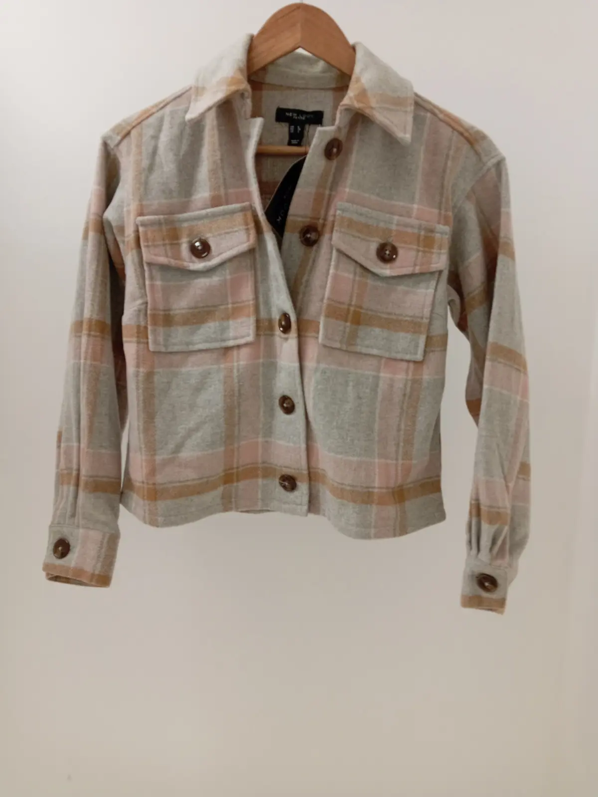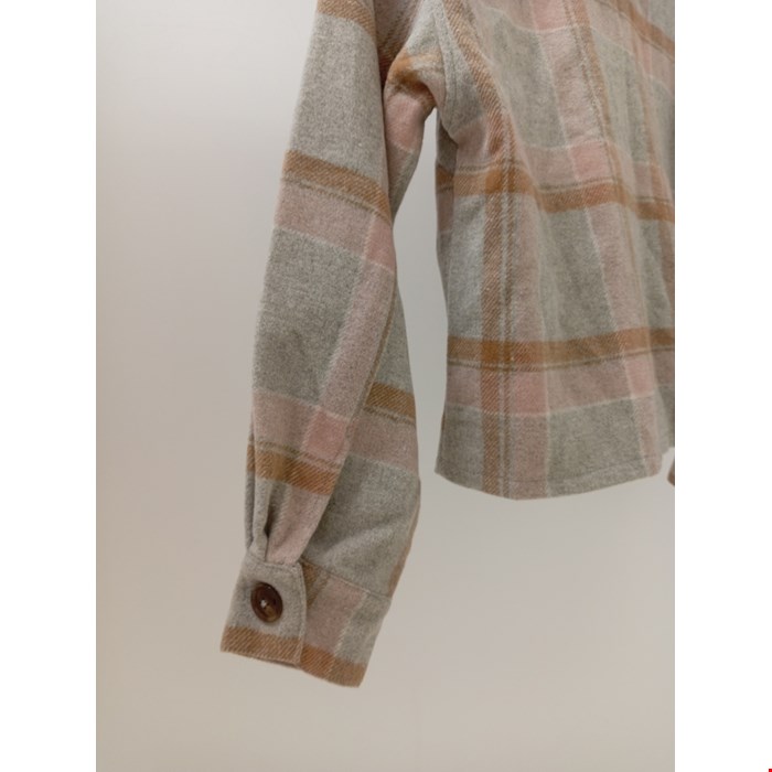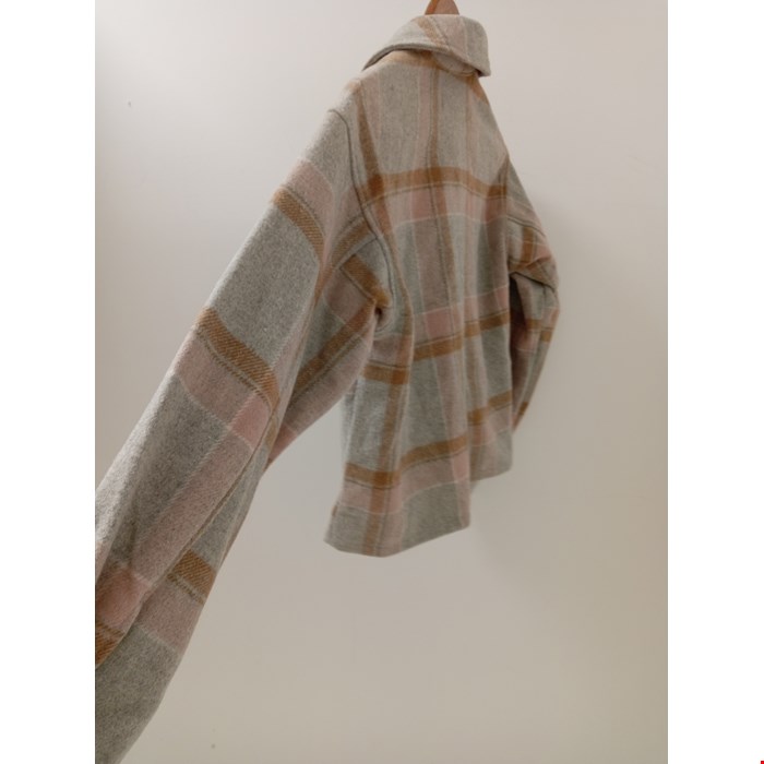 • Style: Checked shacket with button-up front