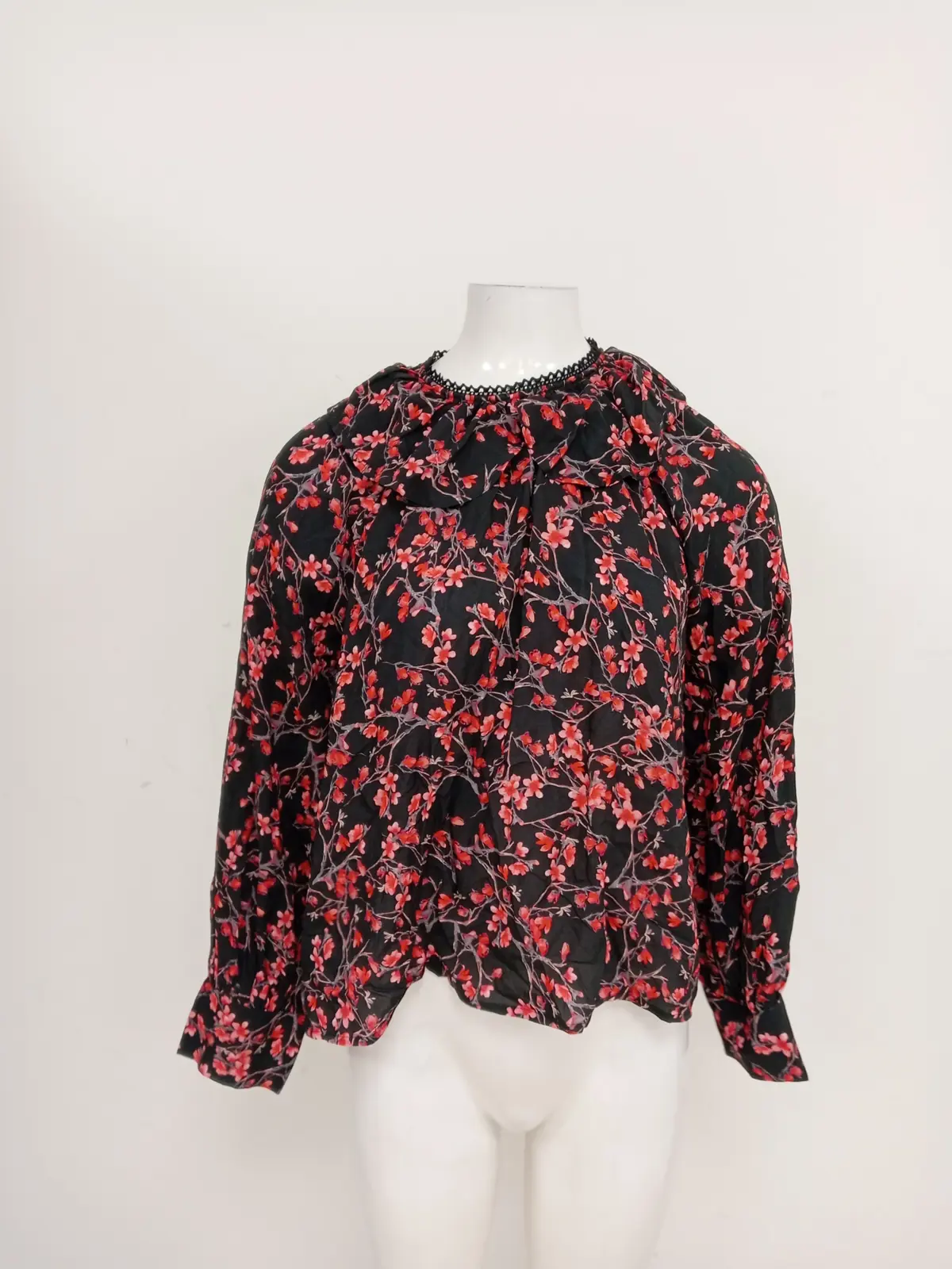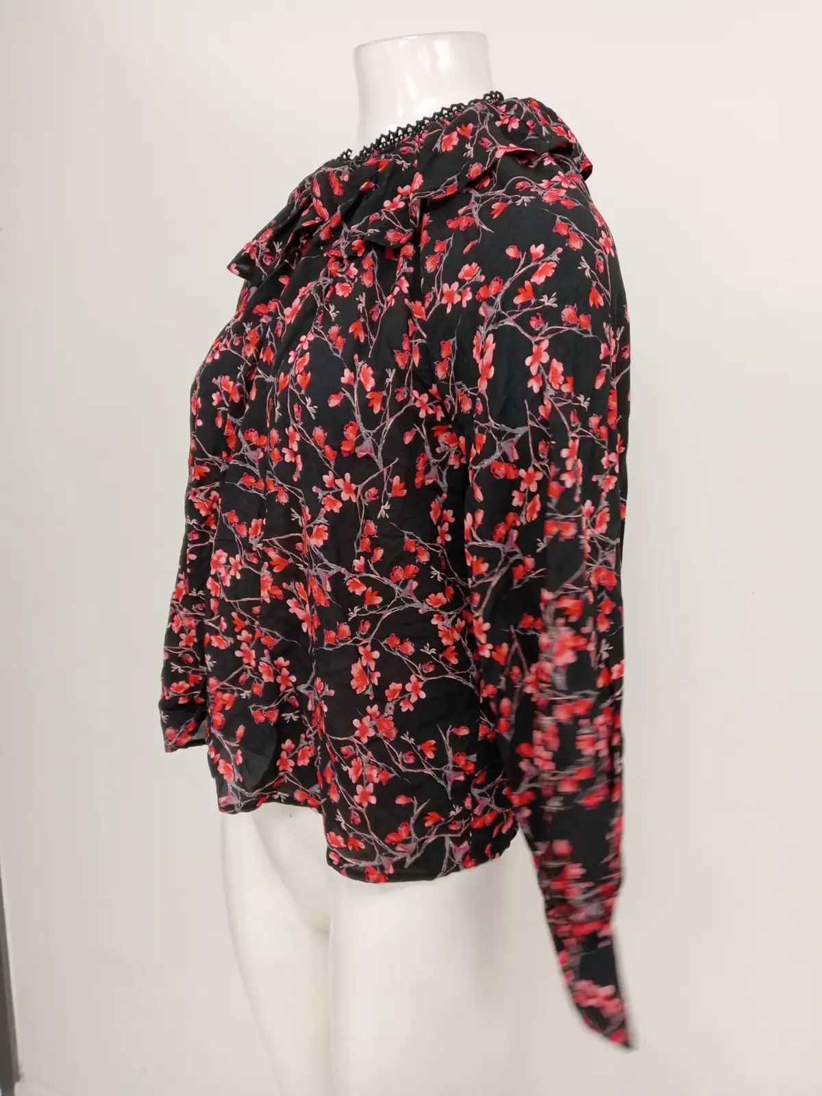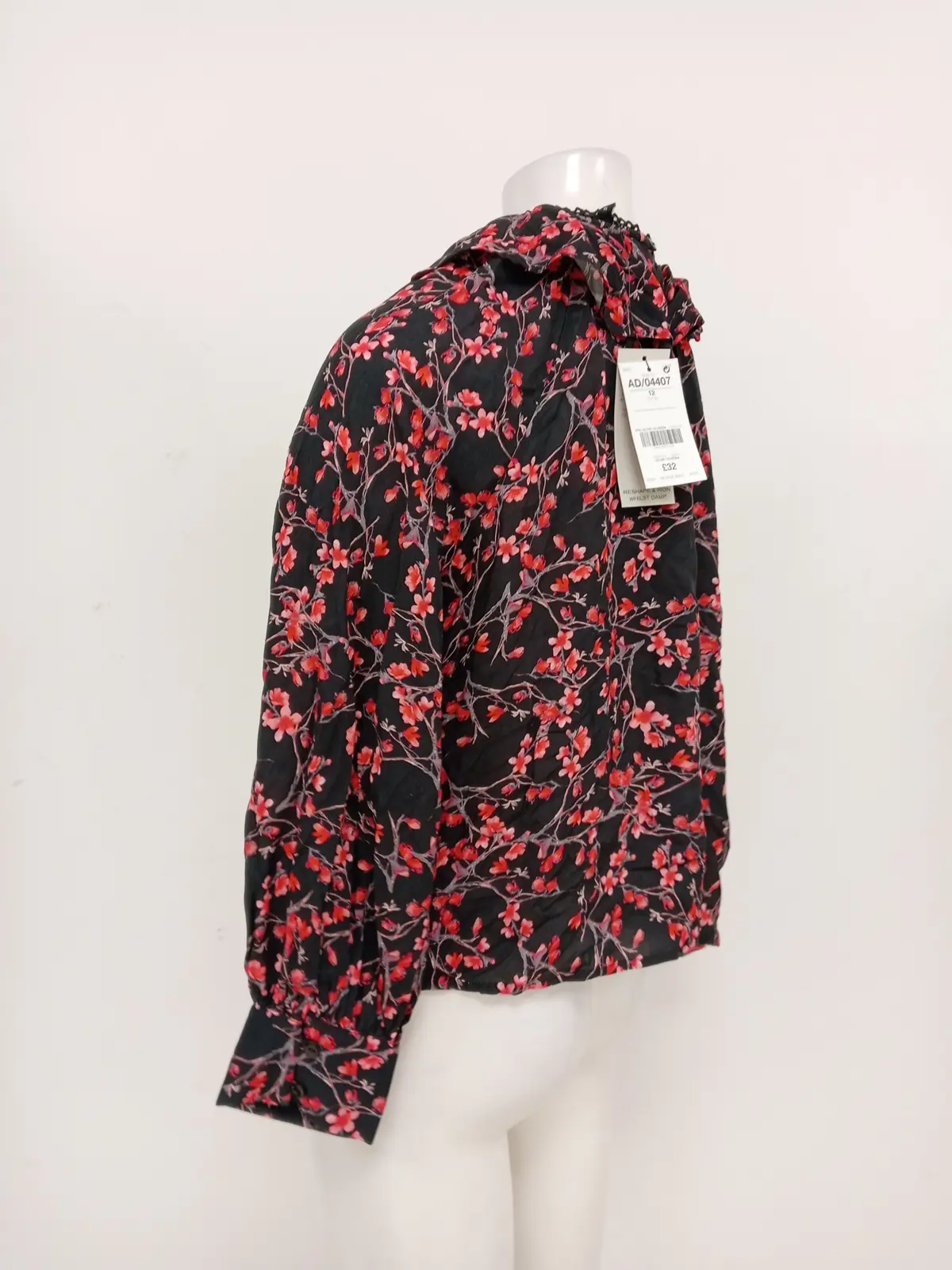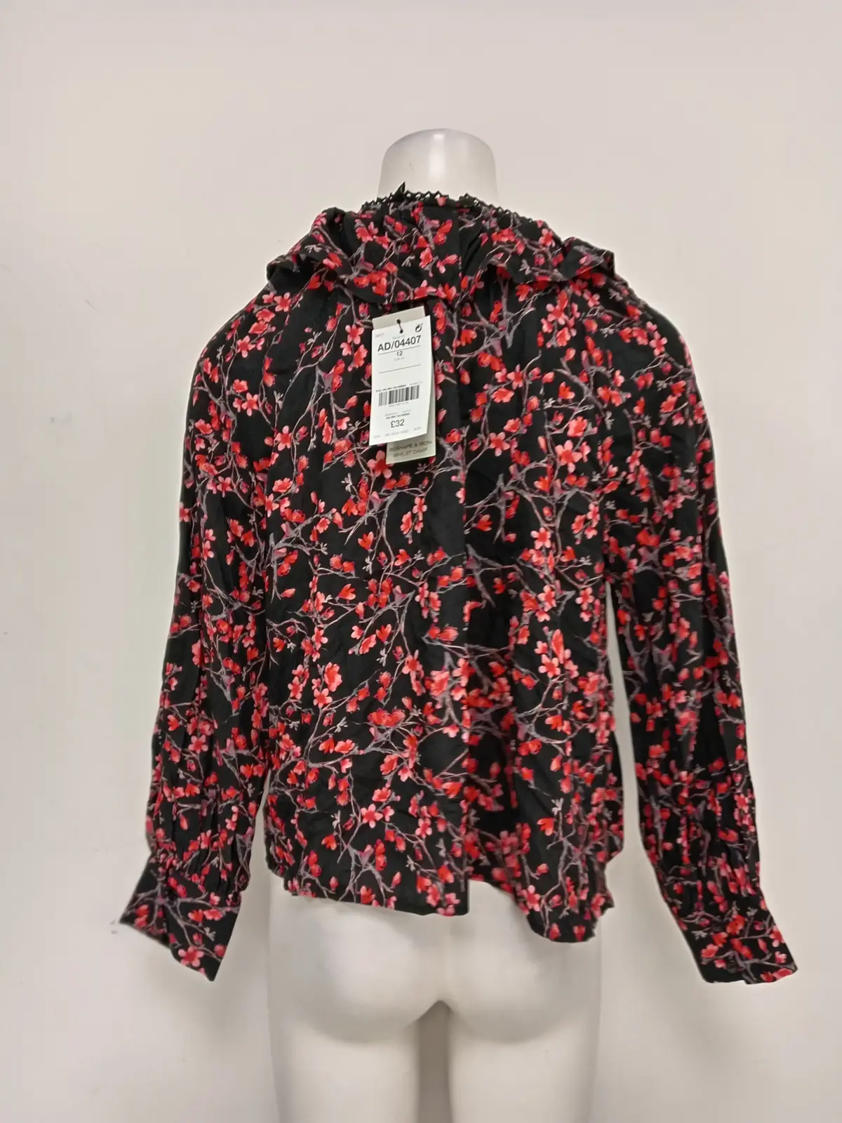 NEXT Ladies UK Size 12 Black Pink Floral Summer Frill Collar Top Pre-Loved