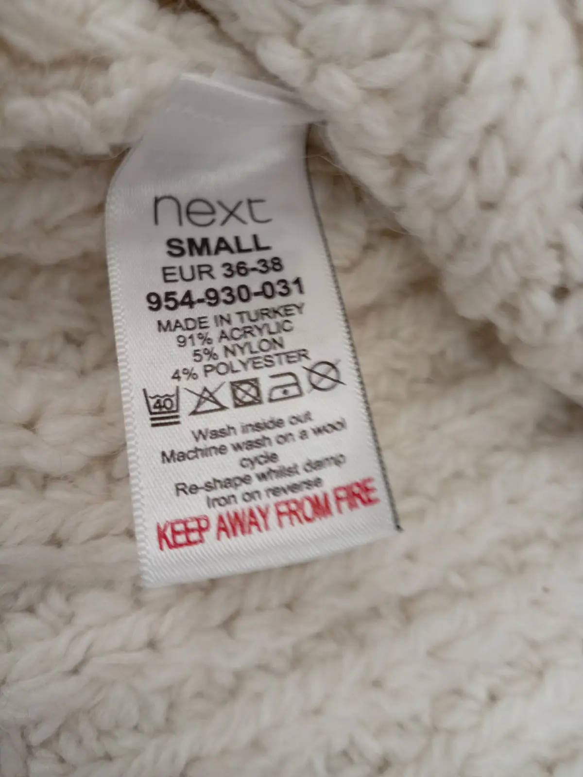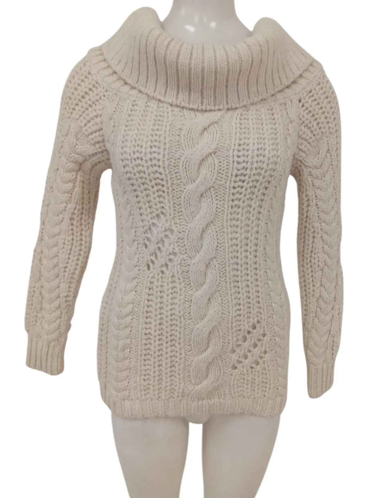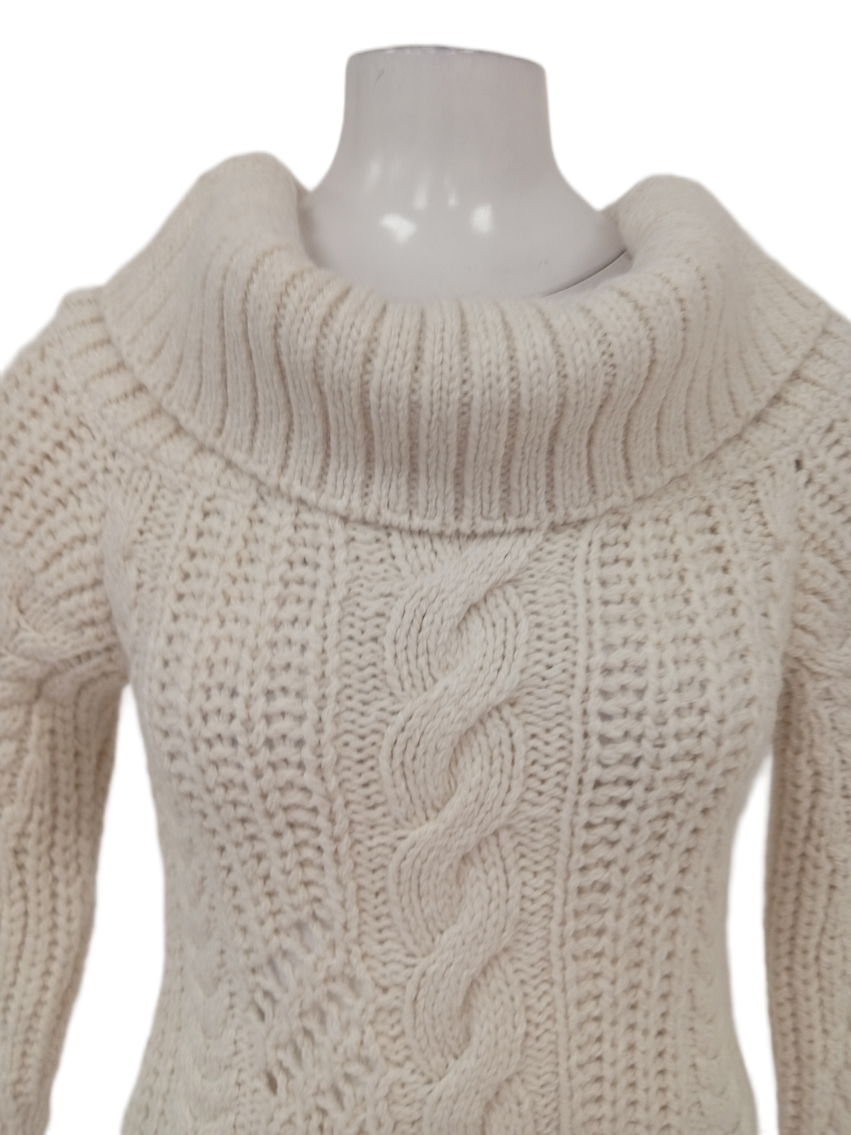 NEXT Ladies UK Size Small Cream Roll Neck Knit Winter Jumper