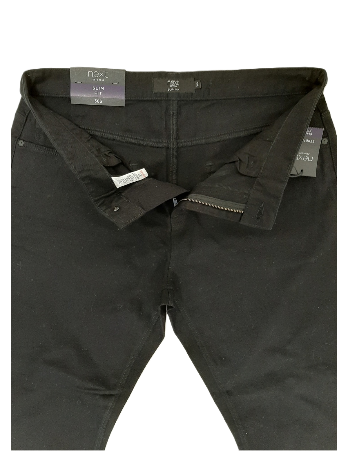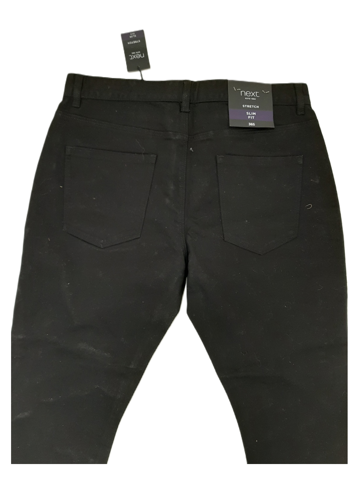 NEXT Men's Stretch Slim Fit Black Denim Jeans – Size 36S – Pre-Loved Condition