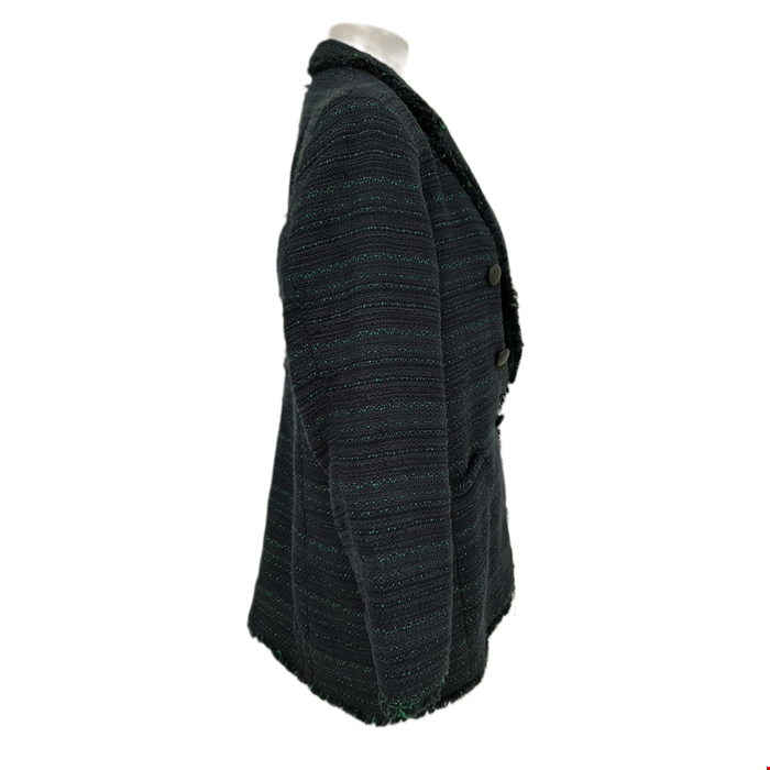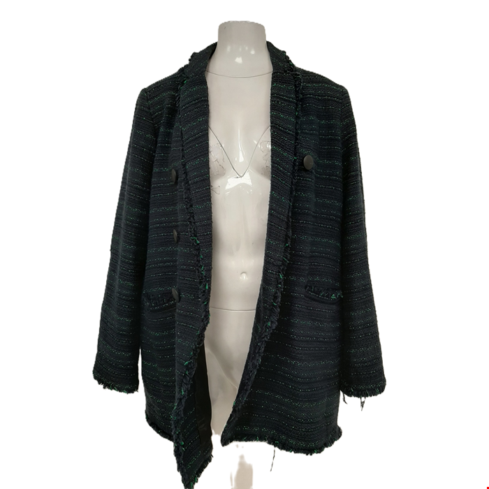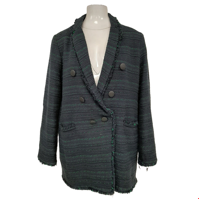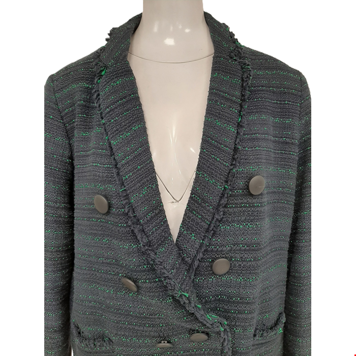 NEXT Women's Navy & Green Textured Distressed Double Breasted Blazer Size 18 Pre-Loved
