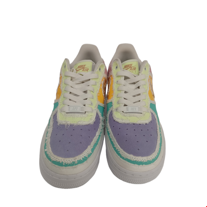 Elevate your sneaker game with these Nike Air Force One trainers, featuring a striking multicoloured patch design that adds a vibrant twist to the classic silhouette. Crafted from a blend of materials, including leather, suede, and fabric, these trainers showcase a unique mix that stands out from the crowd.