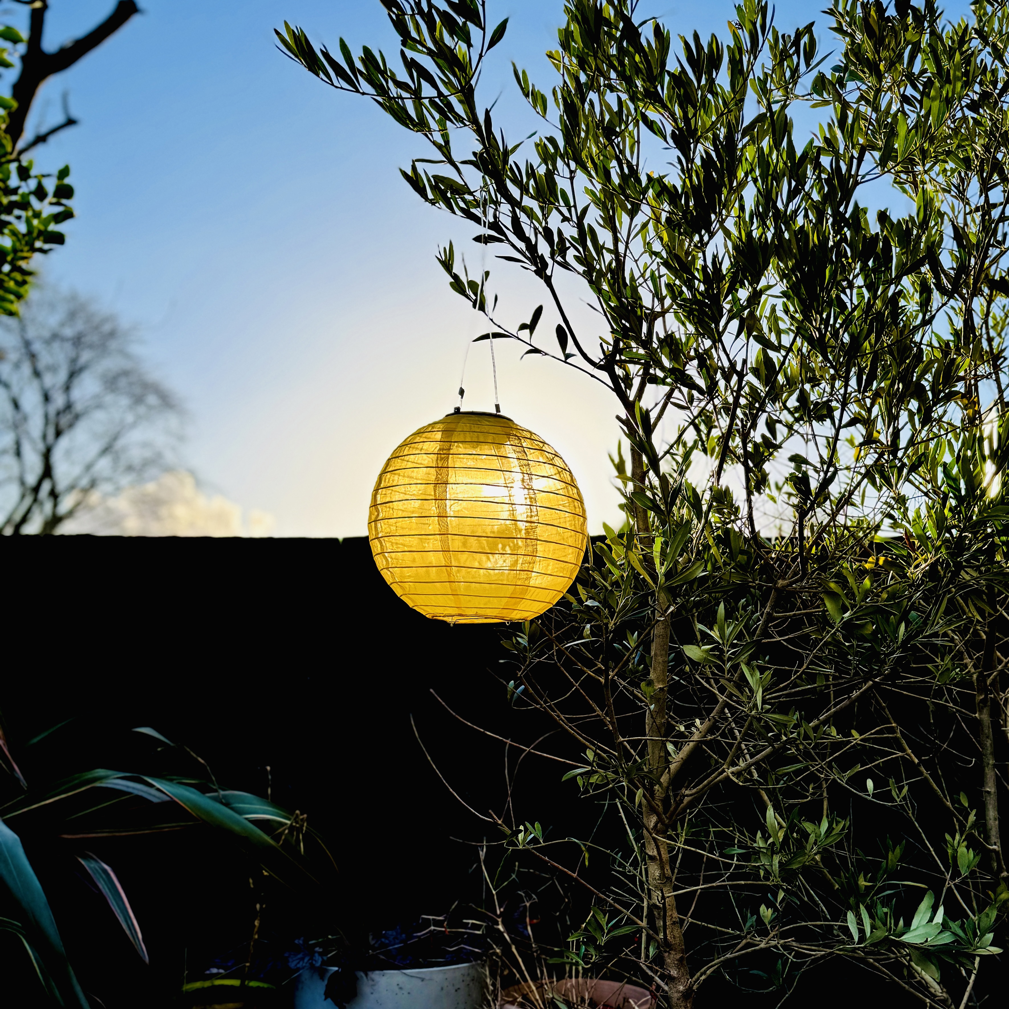 Brighten your garden or patio with the Solar-Powered Mandarin Lantern, offering vibrant colours by day and a warm glow by night. Installation is simple with the included hanging cable and hook.