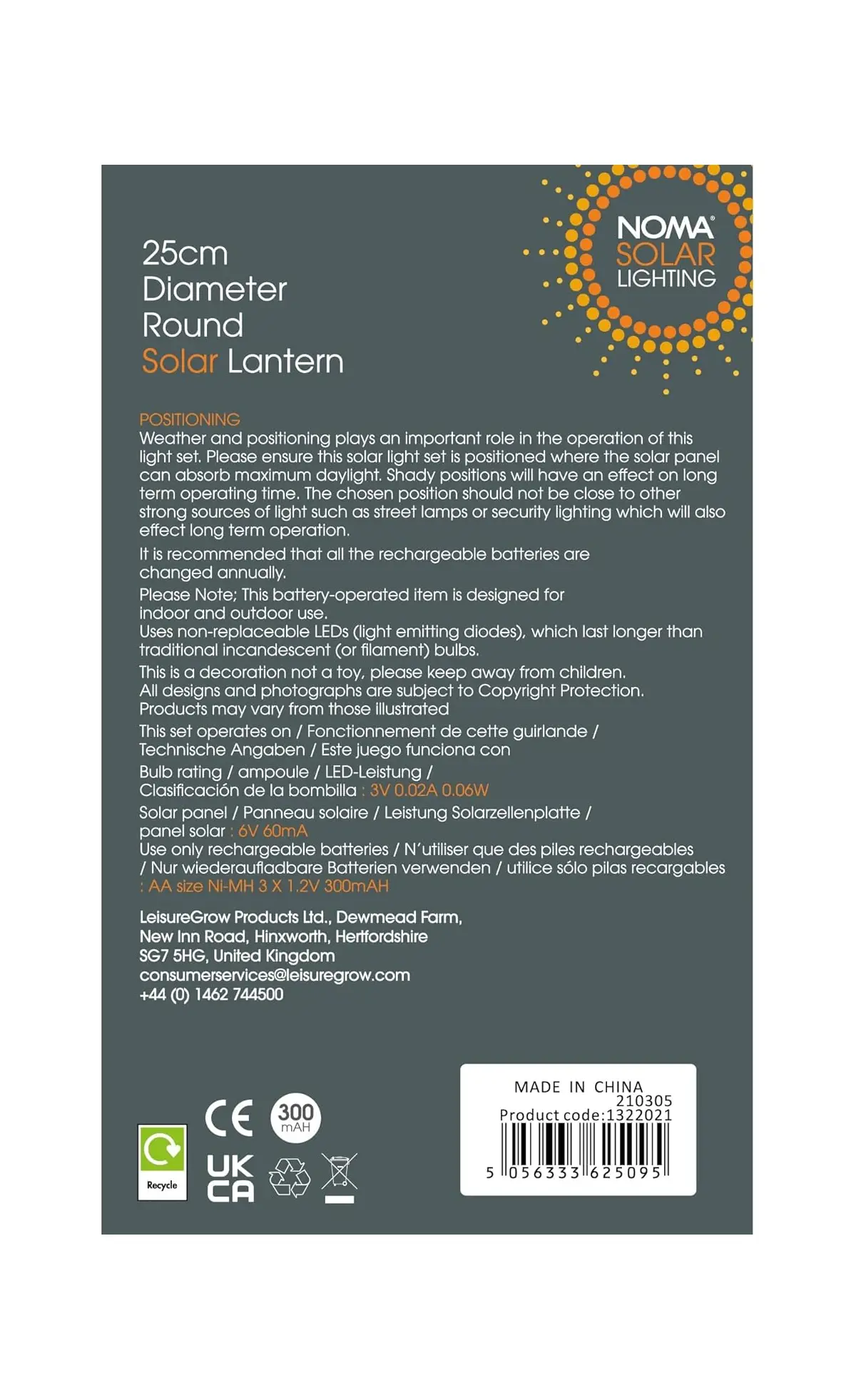 NOMA 25CM Solar Mandarin Round Garden Lantern