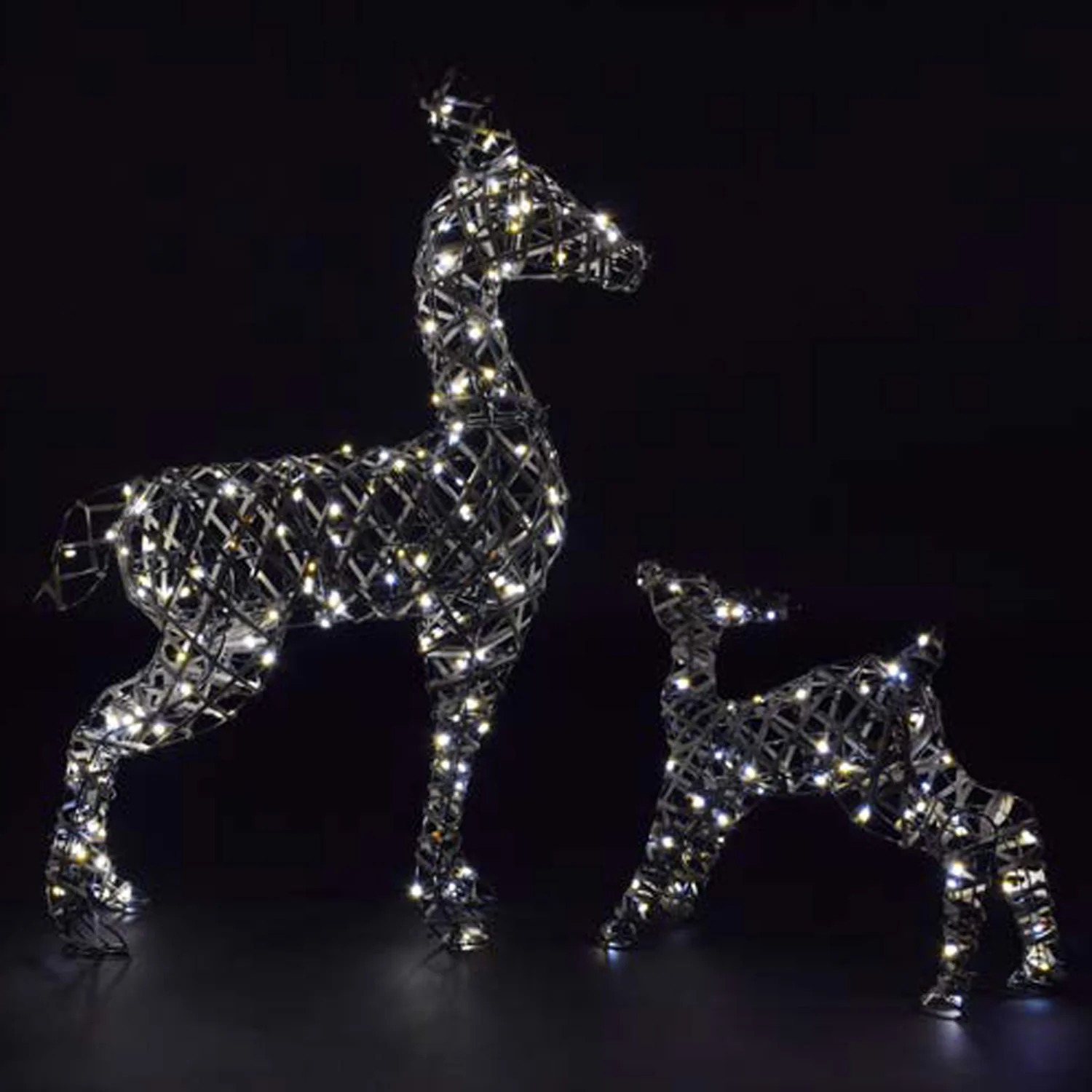 NOMA 90CM Outdoor/Indoor Grey Rattan LED Richmond Deer & Fawn Festive Decor