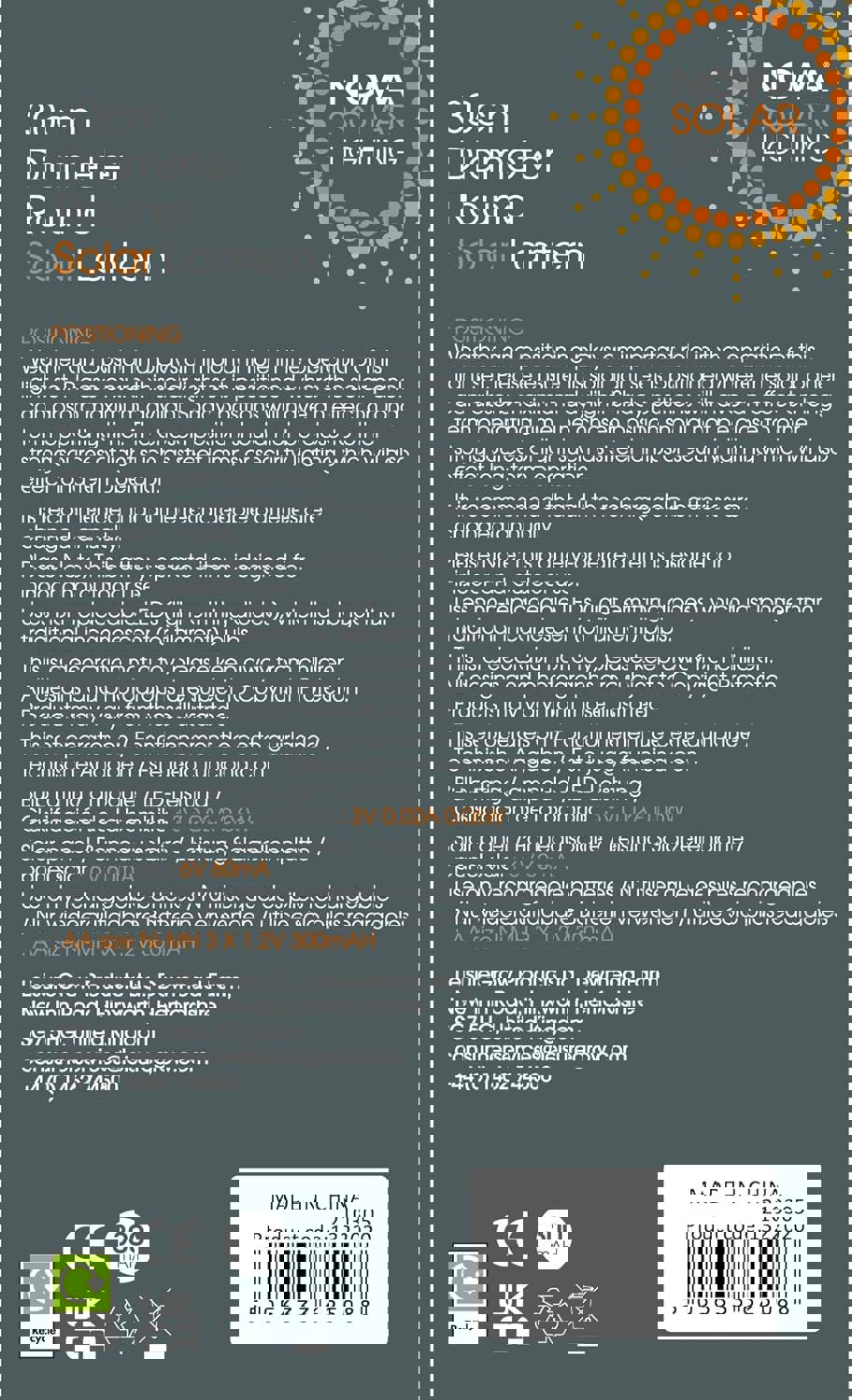 Perfect for adding character to your garden, patio, or balcony, the NOMA Solar Mandarin Round Lantern brings both beauty and practicality. Brighten your evenings and enhance your outdoor atmosphere effortlessly with this charming solar lantern.