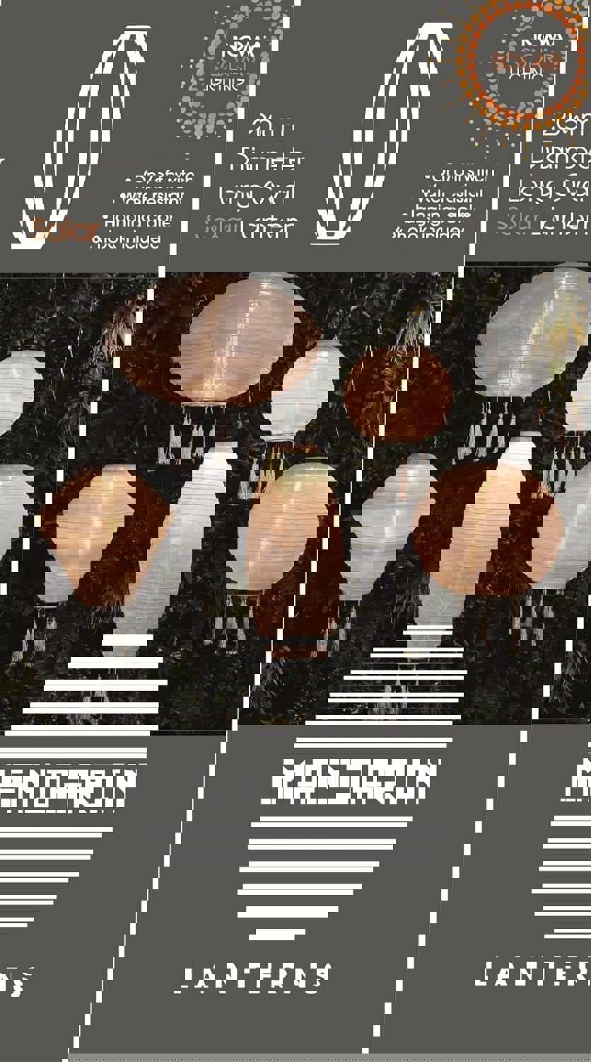This solar-powered hanging Mandarin lantern emits a soft, warm white LED glow, adding a cosy ambiance to your garden or patio. Utilising patented Solar 365 technology and a high-quality solar panel, it ensures energy-efficient battery usage. The built-in dusk sensor allows the lantern to turn on automatically at dusk and off after 6 hours, operating year-round. create a striking impact when hung in groups.