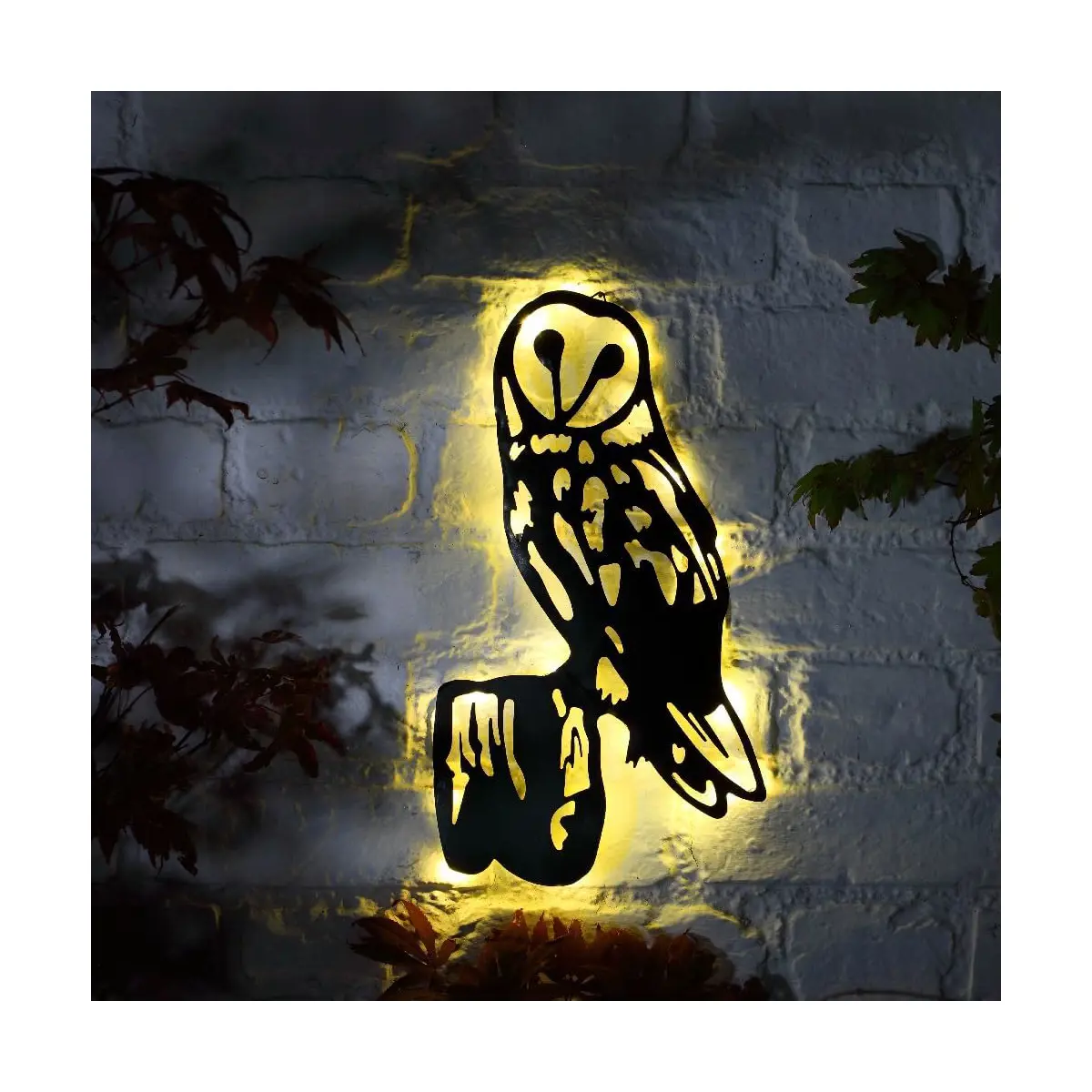 12 warm white LEDs, our plaque emits a soft and welcoming light. Complete with wall attachments, our owl plaque is simple to install on any surface. Just mount it in your desired location