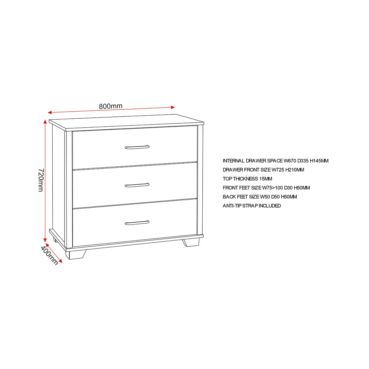 Bring style and functionality to your bedroom with the Oliver 3-Drawer Chest. Finished in a light oak effect, this piece combines modern aesthetics with practical storage. Its sleek design complements any décor, while the sturdy construction ensures durability for everyday use. Each drawer is fitted with metal runners for smooth operation and metal handles for a refined finish and easy grip. With three spacious drawers, the Oliver Chest provides ample space for organizing clothes, accessories, and personal items. Delivered flat packed for convenience, it includes clear instructions for quick and easy assembly.