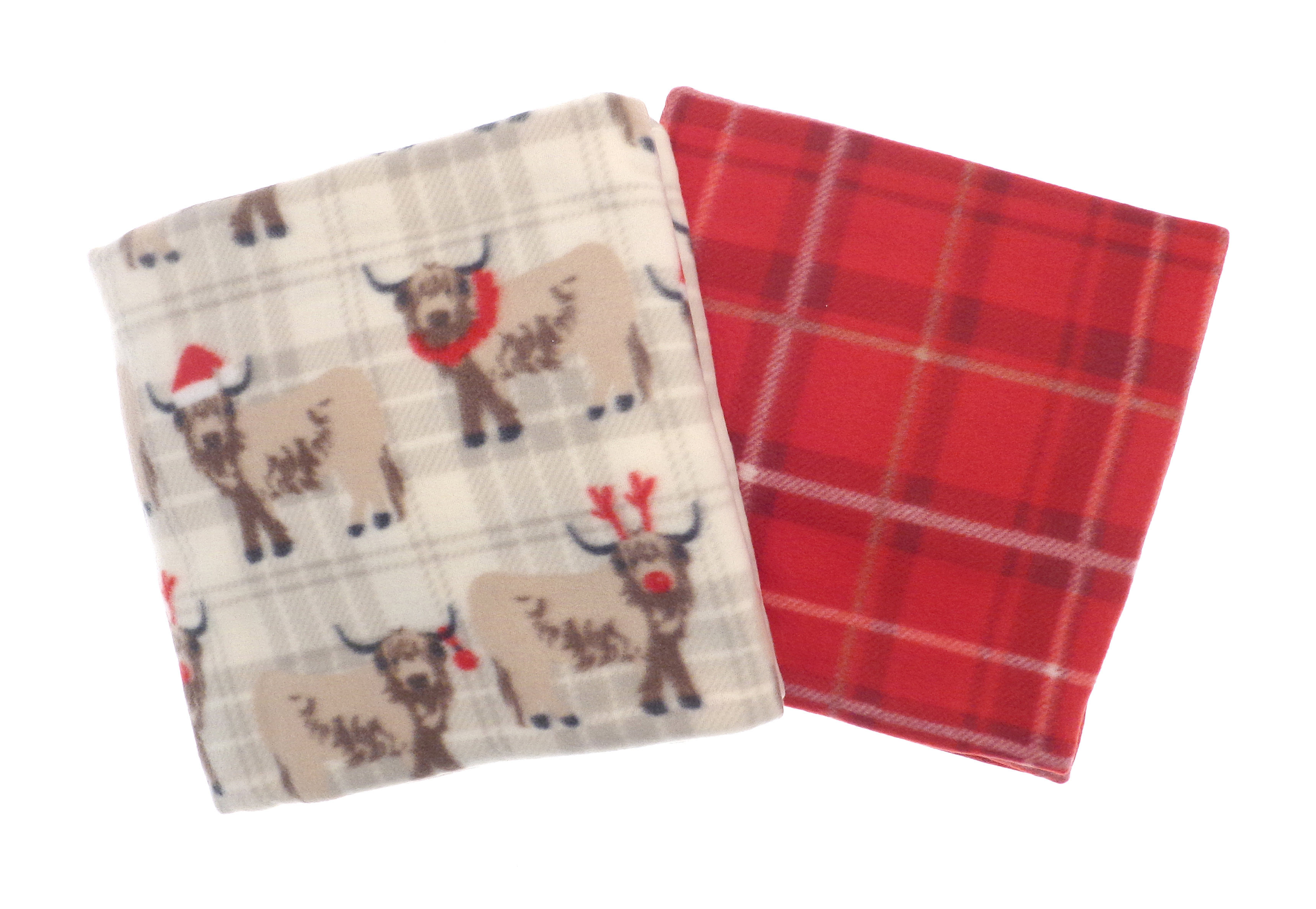 Pack of 2 Highland Cow and Tartan Festive Design Fleece Throws 125x150cm