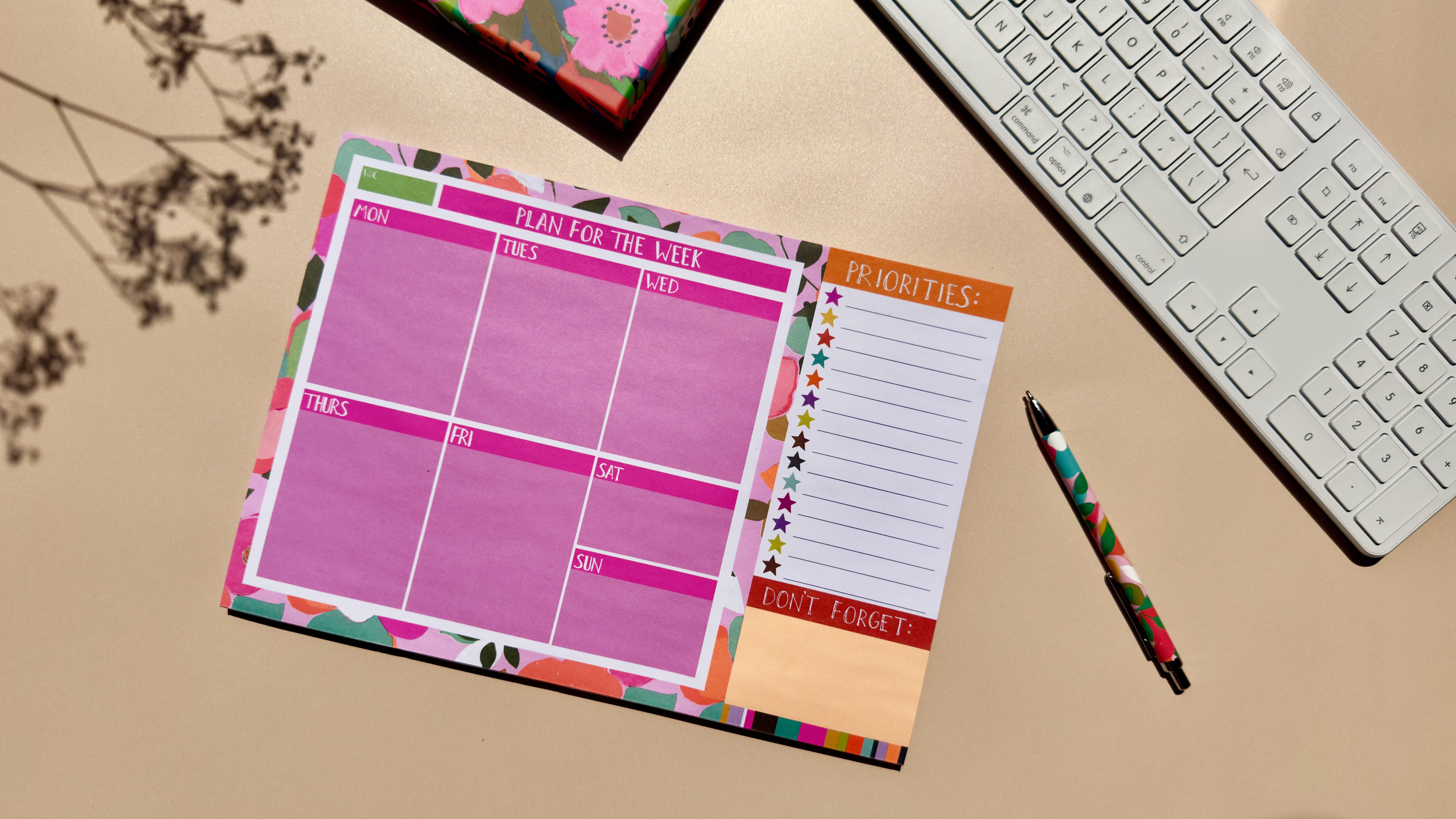 Stay on top of your tasks in style with this vibrant A4 desk planner featuring a bold and colourful Papersalad print. With 60 tear-off sheets, it offers a weekly view with plenty of space for to-do lists, notes, and priorities—helping you manage daily, weekly or monthly goals with ease. Whether at home, school, or in the office, it’s the perfect addition to any workspace.