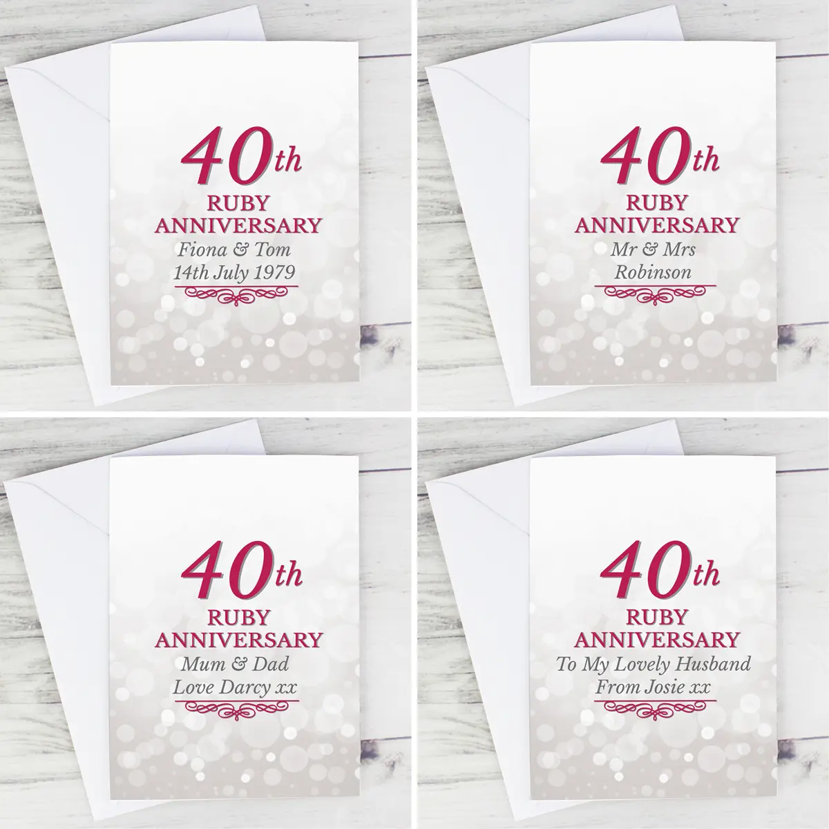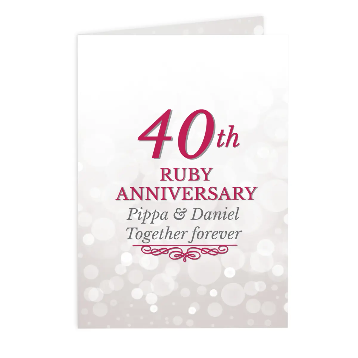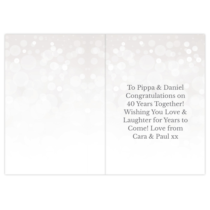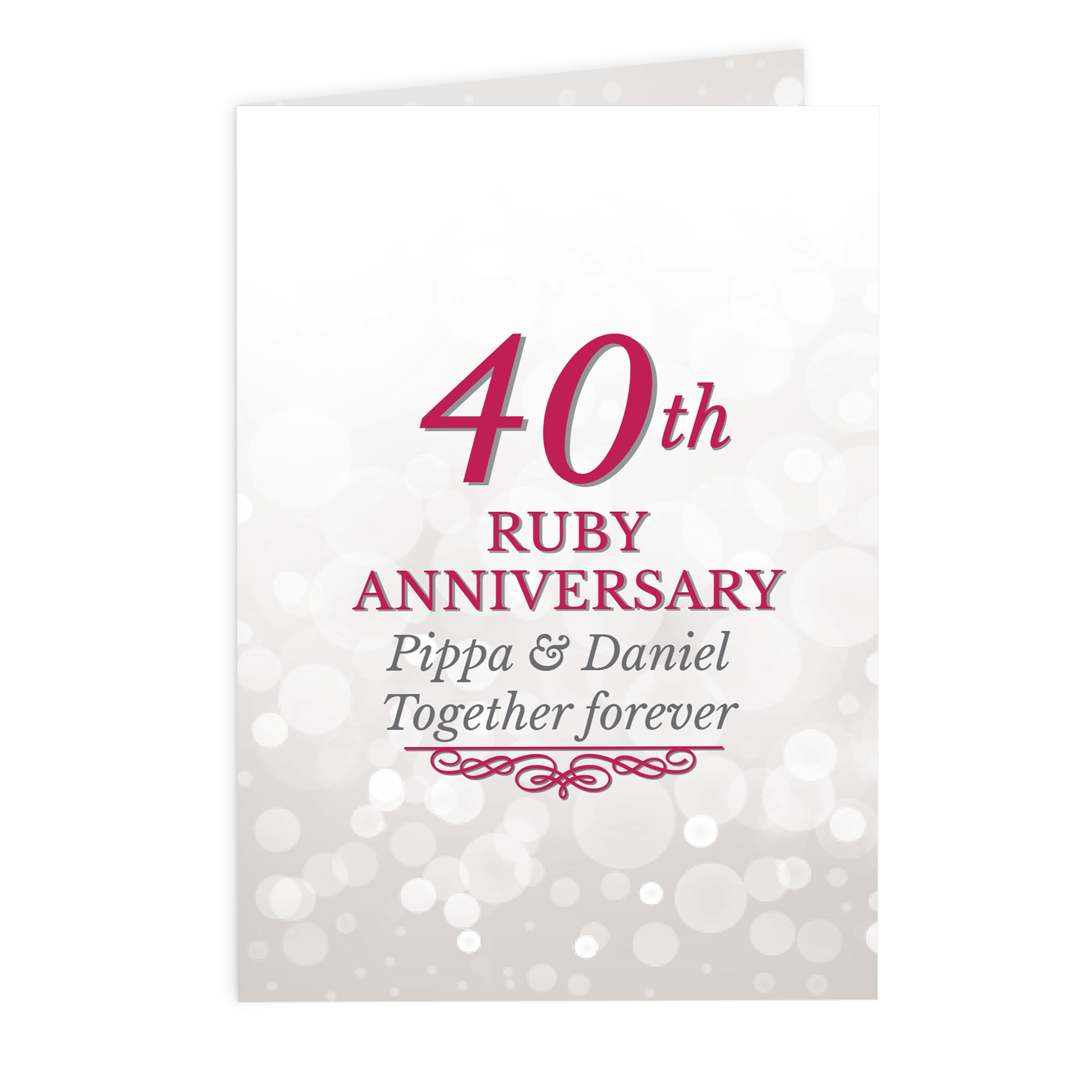 Celebrate 40 years of love and devotion with this stunning personalised Ruby Anniversary card. Featuring the fixed words “40th Ruby Anniversary,” it is a heartfelt way to mark this remarkable milestone while adding your own special message inside and out.