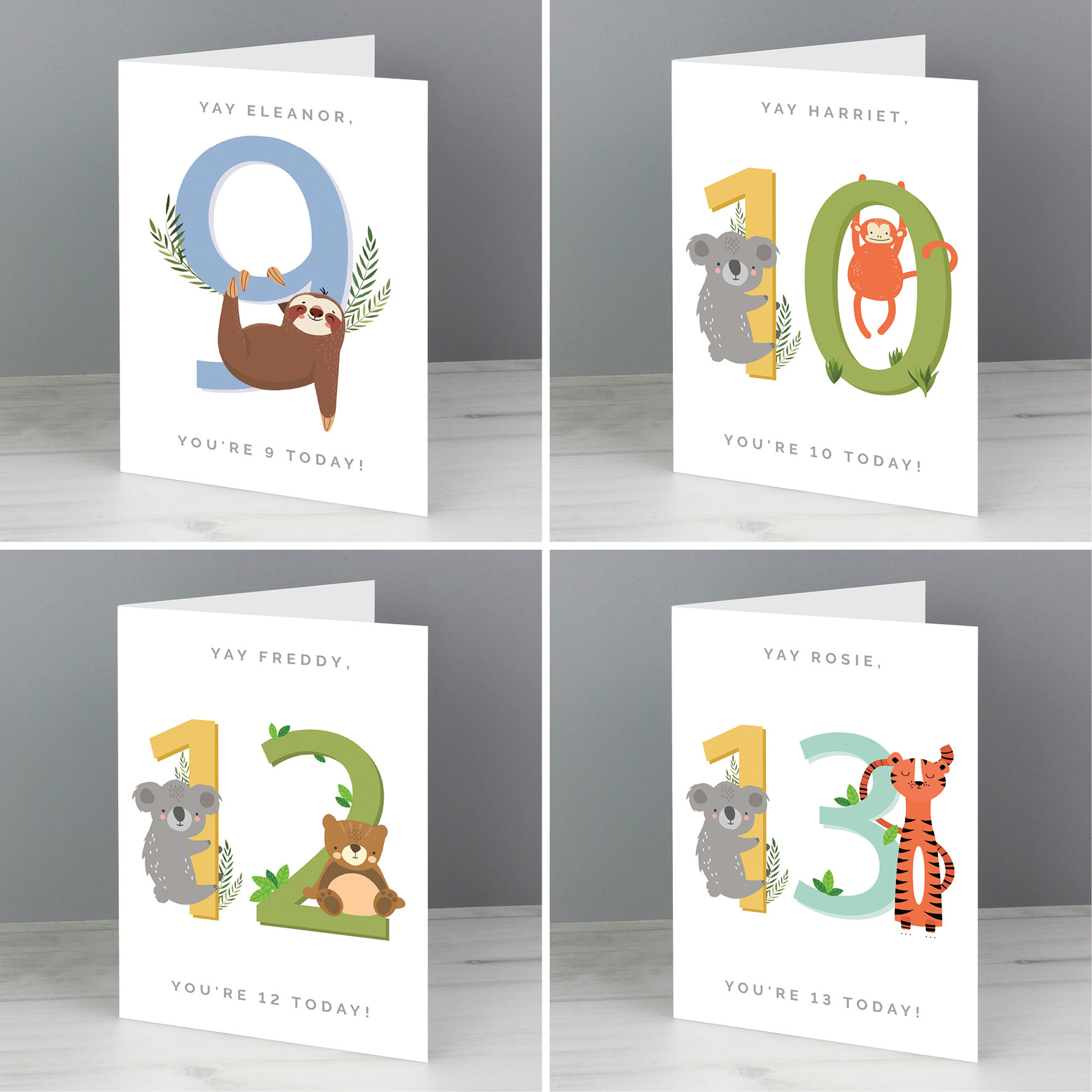 Make their birthday roar with excitement with this colourful personalised animal card. Each age is paired with its own adorable character, from cheeky monkeys and sloths to proud lions and playful pandas, making every year’s design wonderfully unique. A fun and memorable way to celebrate a special birthday.