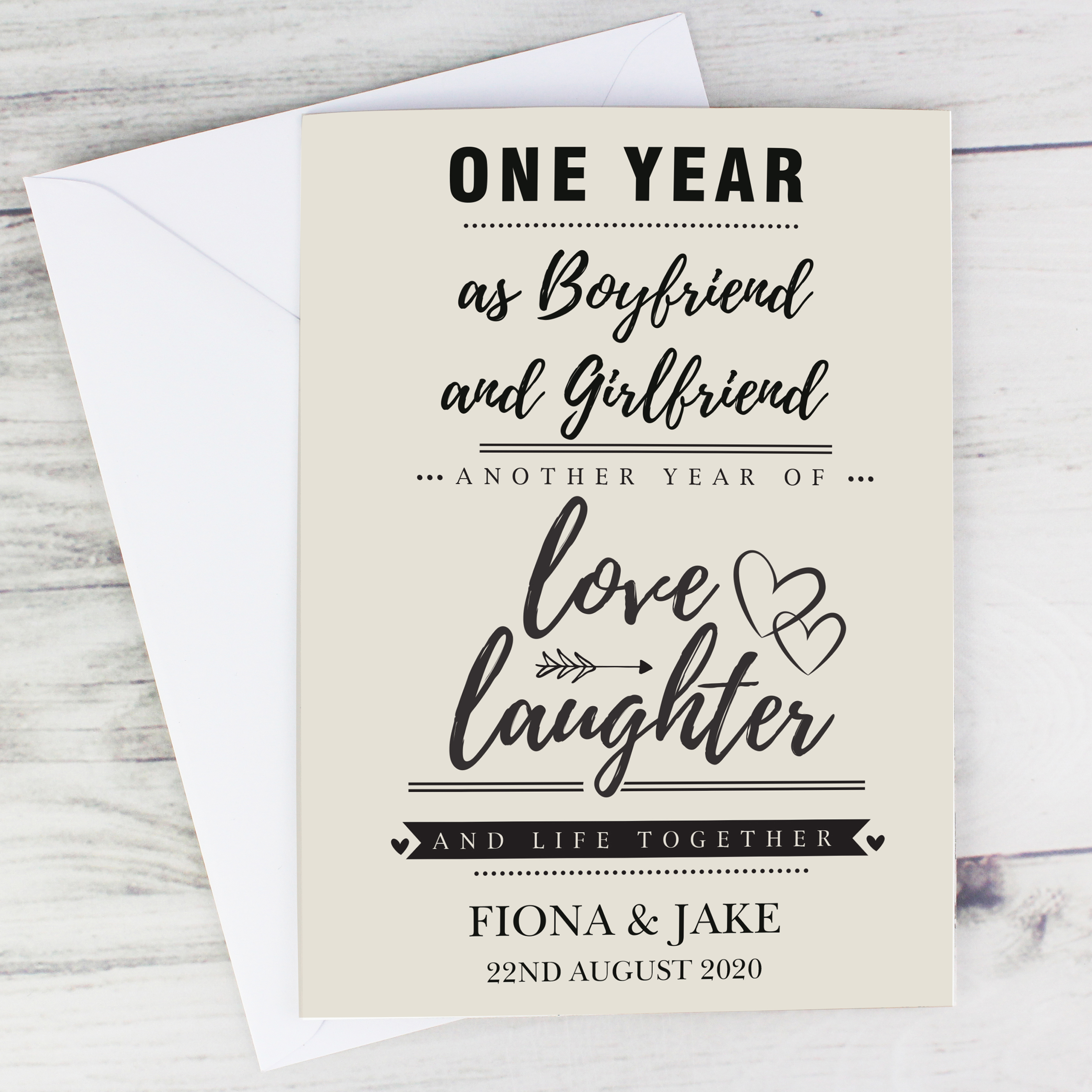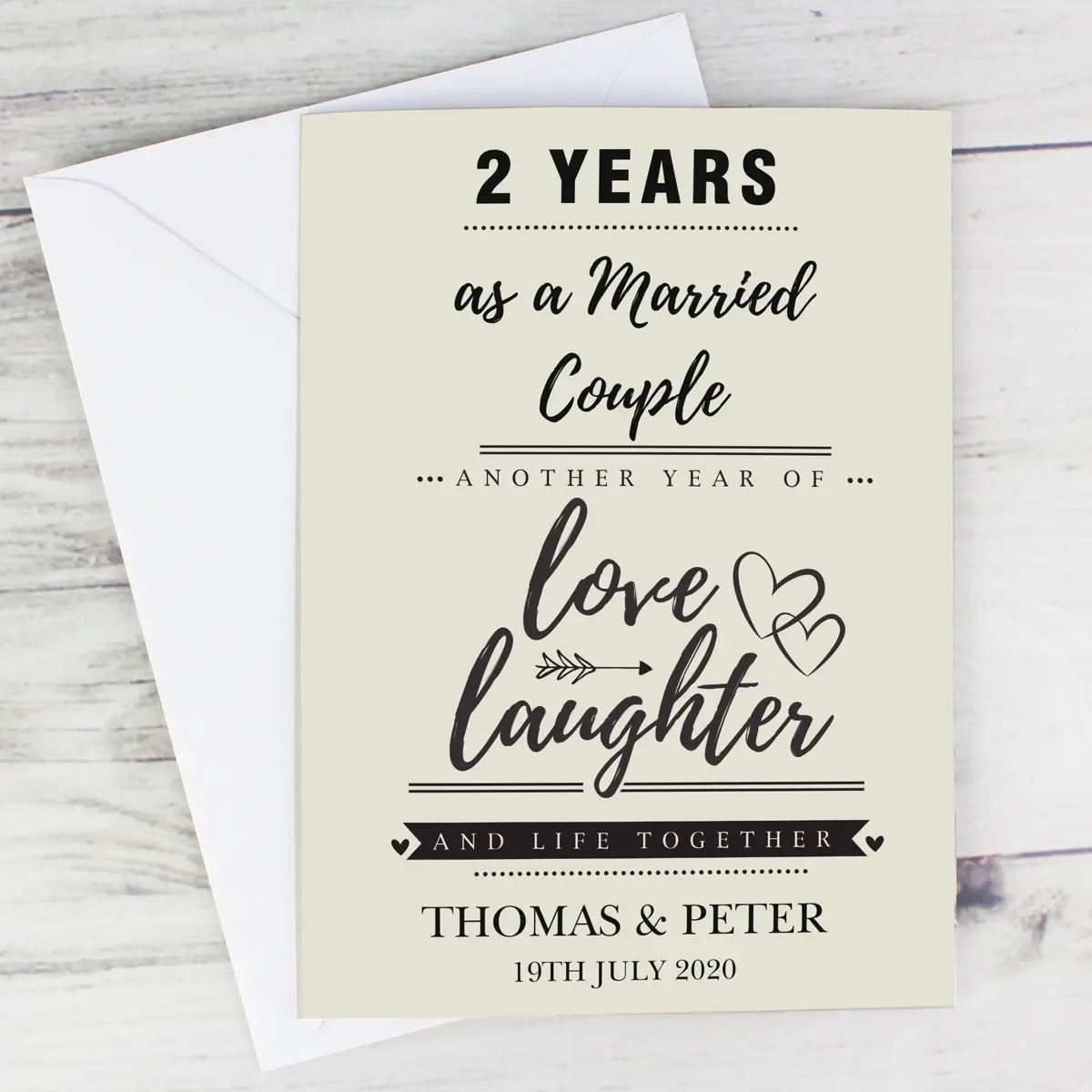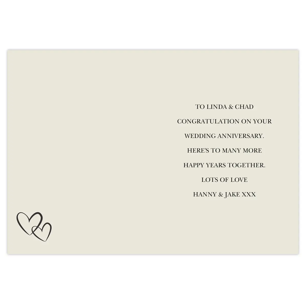 Celebrate love, laughter and life together with this beautiful personalised anniversary card. Featuring the heartfelt fixed words “Another year of Love, Laughter and Life Together,” it is a thoughtful way to mark such a meaningful occasion with your own special message.