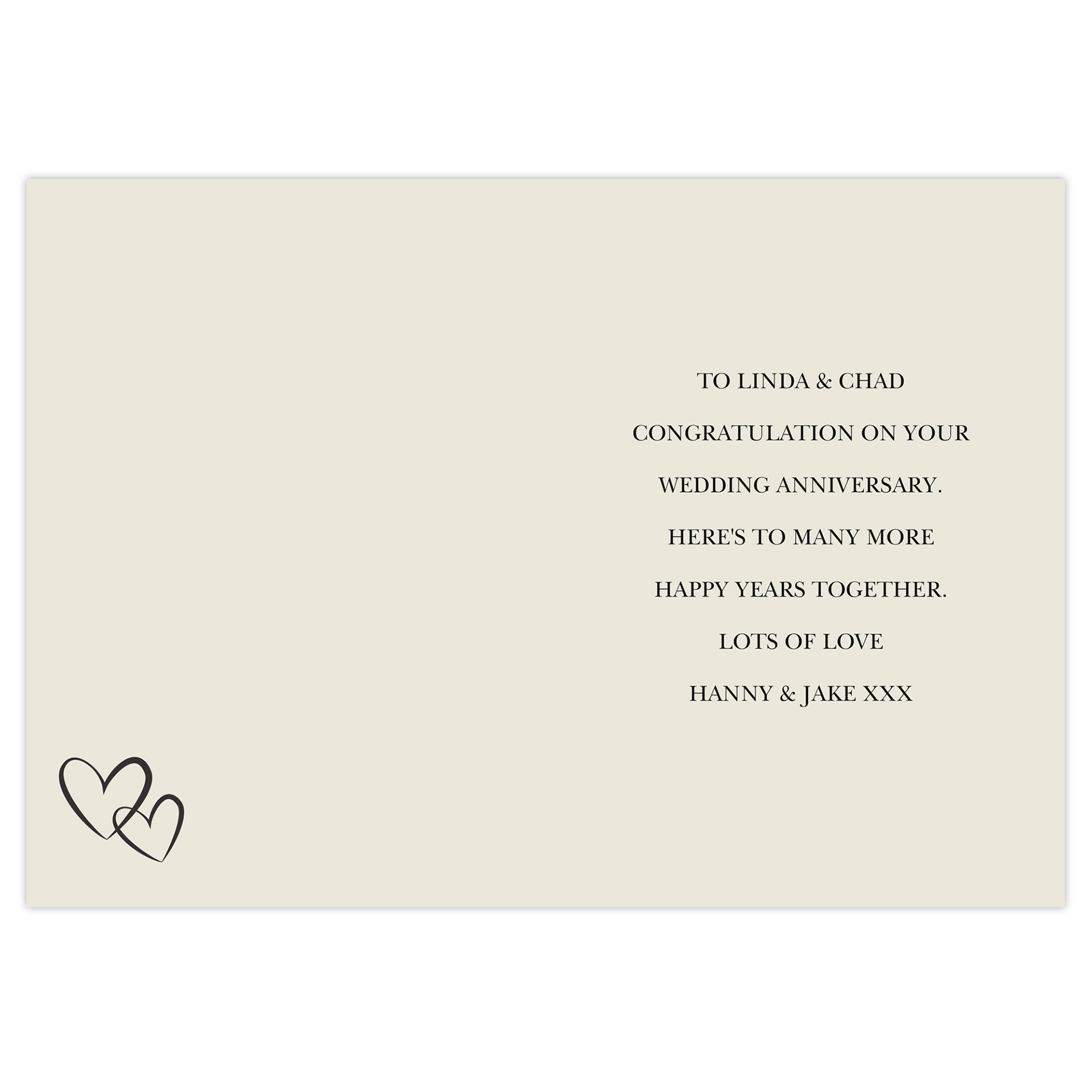 • The words “Another year of Love, Laughter and Life Together” are fixed and cannot be changed