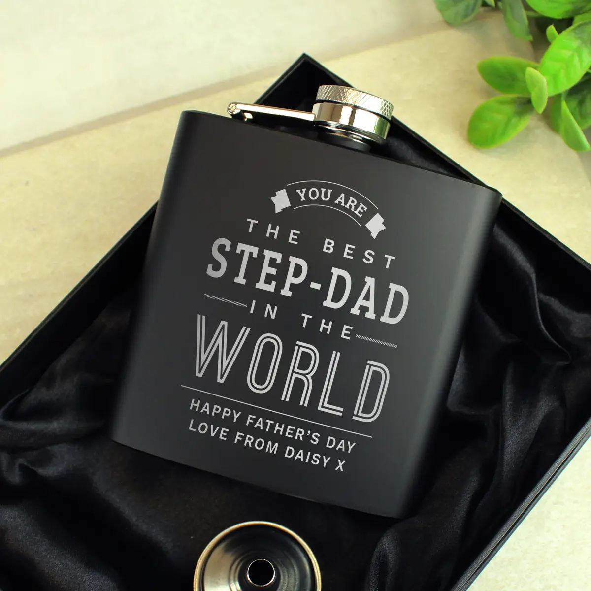 The perfect gift for Father’s Day or a birthday, this Personalised 'Best in The World' Black Hip Flask is a lovely present for any Dad who enjoys a tipple. The sleek stainless steel hip flask can hold 6oz of his favourite liquid. Embossed with "You are the best... in the world" text, the missing word can be personalised and you can add your own heartfelt message underneath. It comes in a silk-lined presentation box, so no need to worry about the gift wrap – bonus!