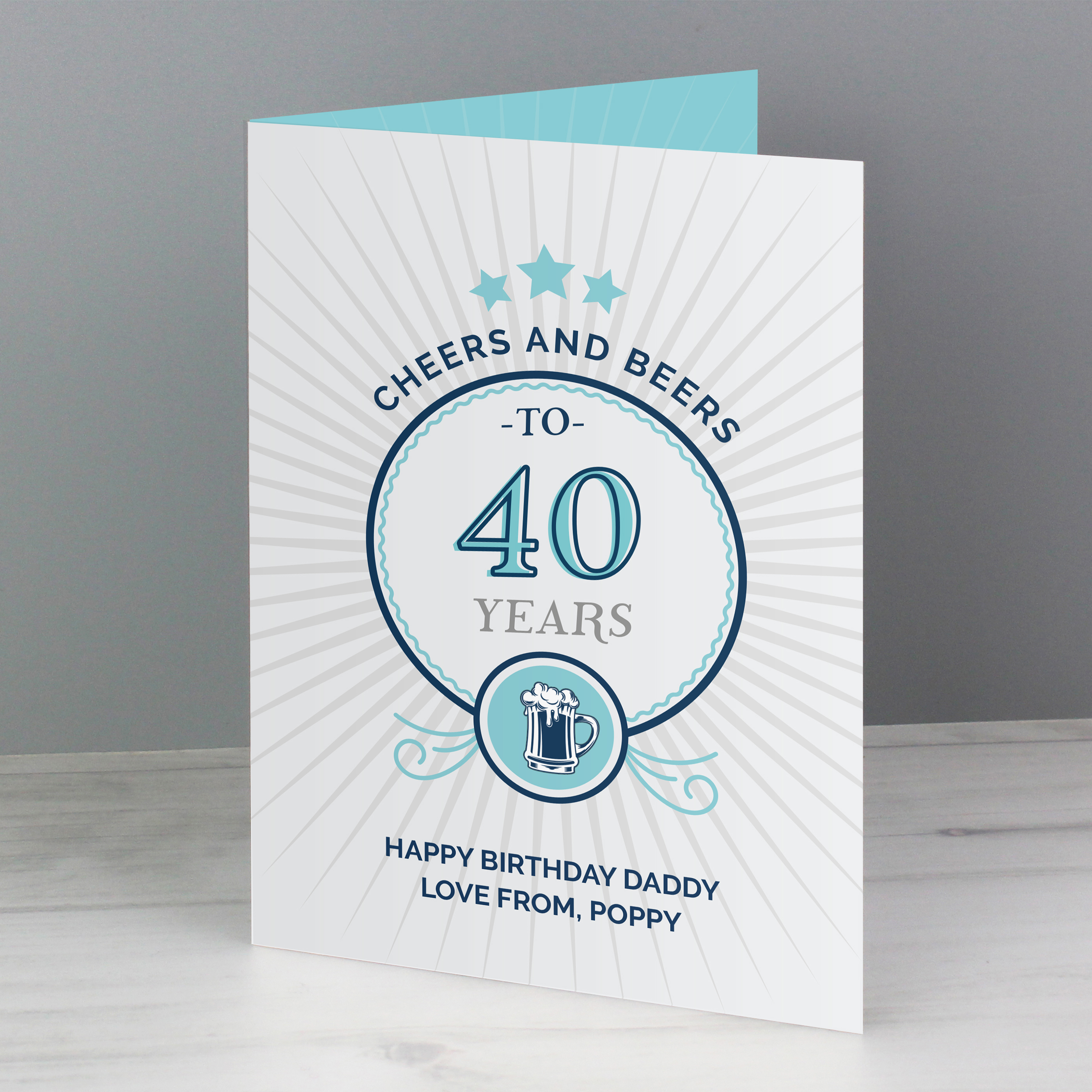 Raise a toast to their special day with this fun personalised Cheers and Beers birthday card. Featuring bold typography and the fixed words “Cheers and Beers,” “To” and “Years,” it is the perfect choice for anyone who loves to celebrate with a pint in hand.