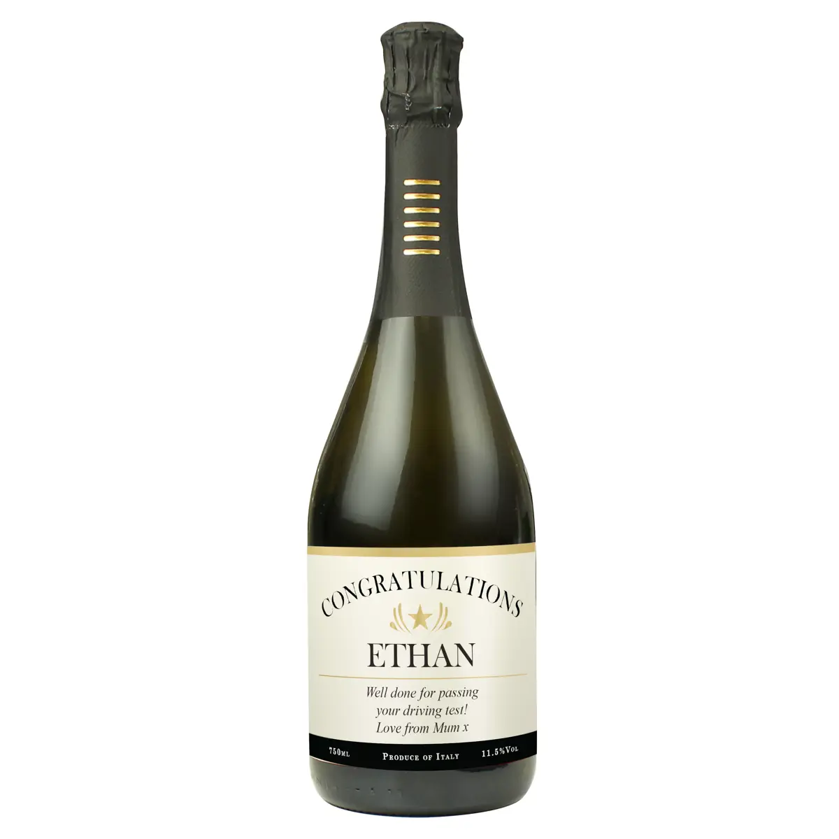 You can personalise this Prosecco with 5 lines of text as below