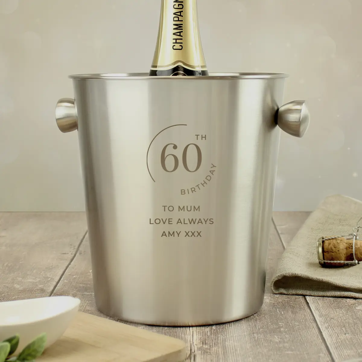 Personalise this stainless-steel ice bucket with the following