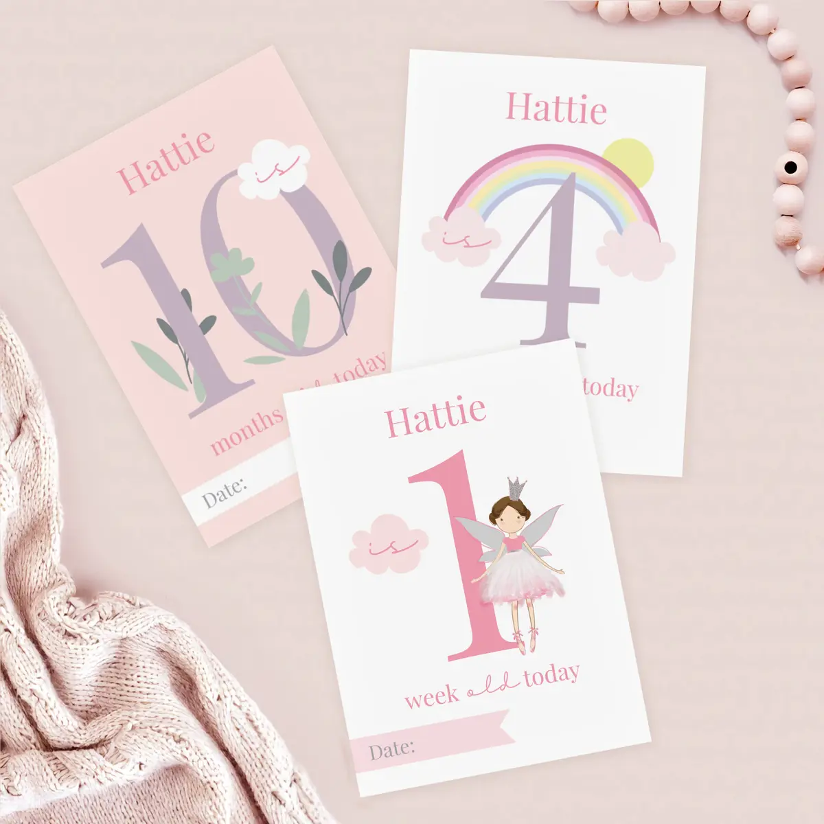 Personalised Fairy Princess Baby Milestone Cards Pack of 24
