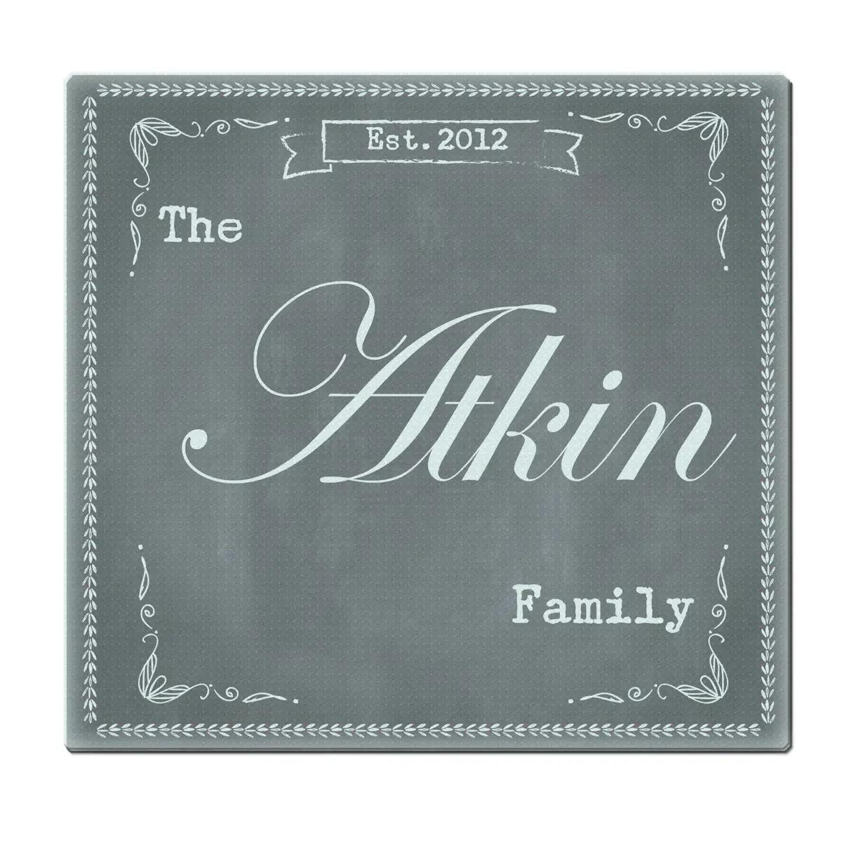 You can personalise this glass chopping board with 4 lines of text. Line 1 will appear in the banner at the top and can take up to 10 characters in length. Lines 2 & 4 can take up to 20 characters and line 3 can take up to 12 characters in length. All personalisation is case sensitive and will appear as entered.