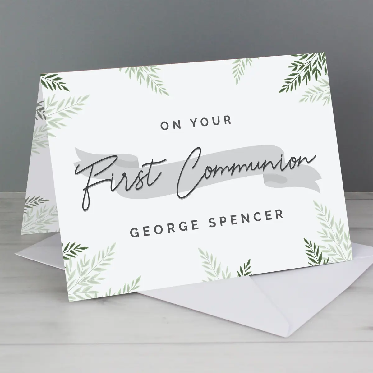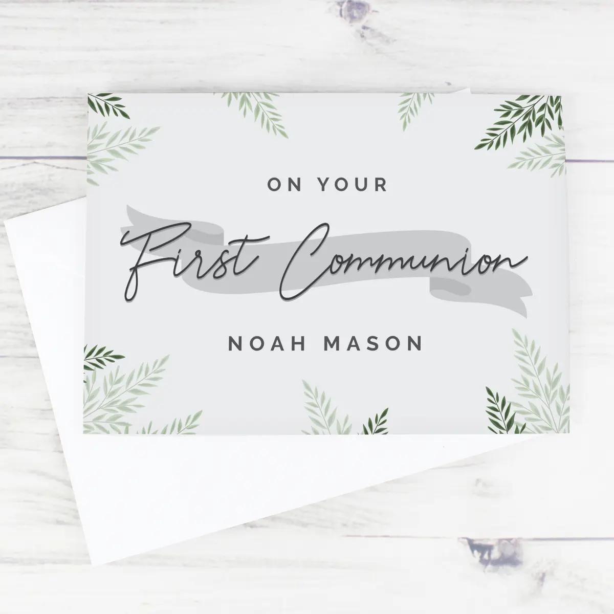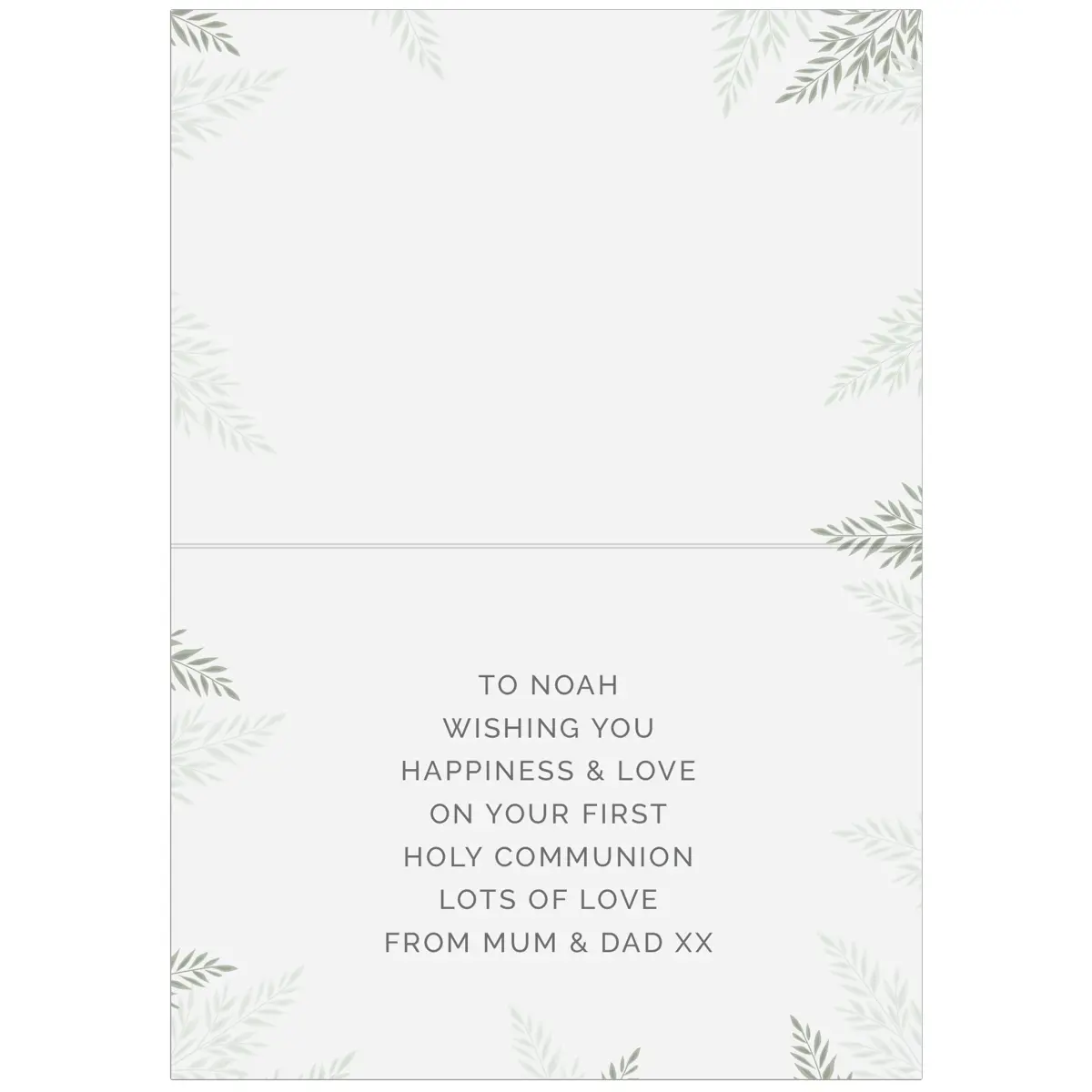 Celebrate a sacred milestone with this beautifully personalised First Communion card. With its fresh, modern design in gentle neutral tones, it is a thoughtful way to mark the occasion and share blessings with a loved one.