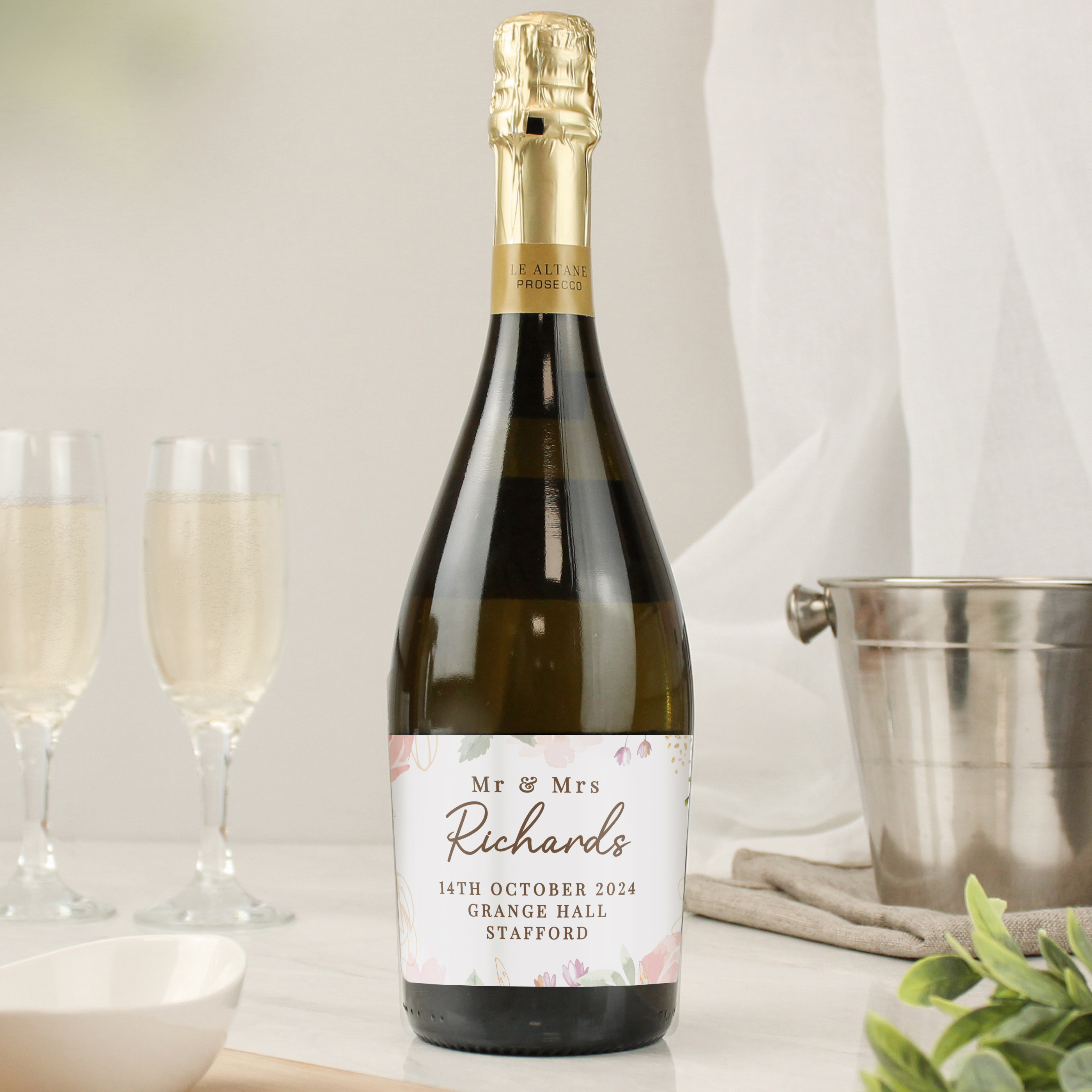 Personalised Floral Watercolour Bottle of Prosecco Wedding Gift