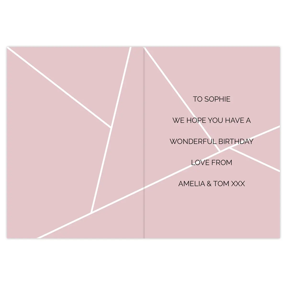 Make any occasion extra special with this stylish personalised geometric card. Featuring a modern design, it’s a versatile choice that can be tailored with your own words for birthdays, Christmas, new home celebrations and more.